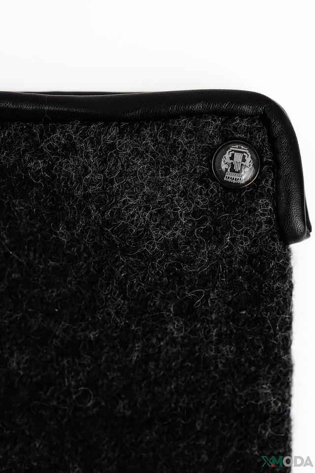Перчатки имеют стандартную длину и плотно прилегают к руке, обеспечивая свободу движений. Манжеты декорированы черной кожей, что придает им более изысканный вид. На тыльной стороне перчатки расположена декоративная кнопка с логотипом бренда.