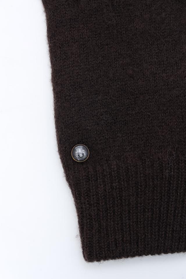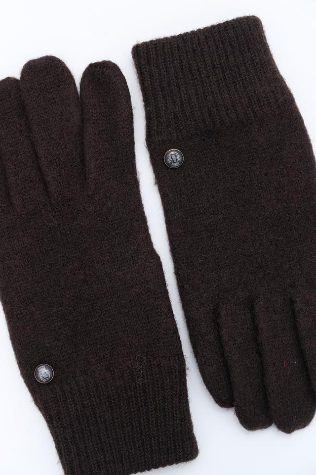 Перчатки имеют классический коричневый цвет, который легко сочетается с различными элементами гардероба. На тыльной стороне перчаток расположена декоративная металлическая деталь, придающая им элегантный вид.