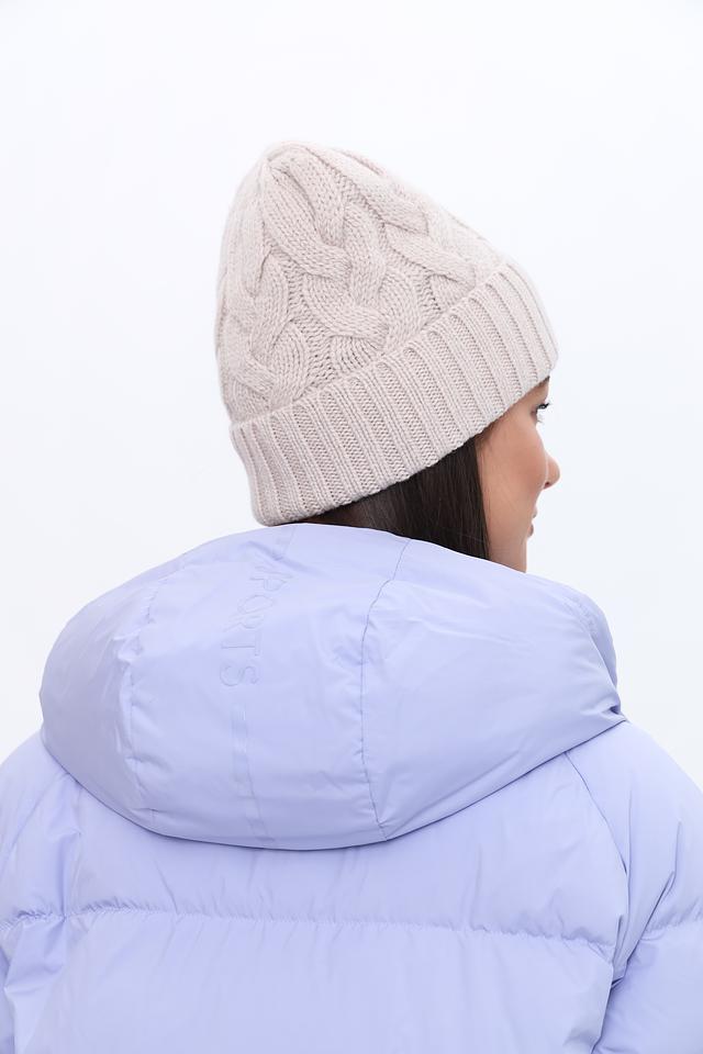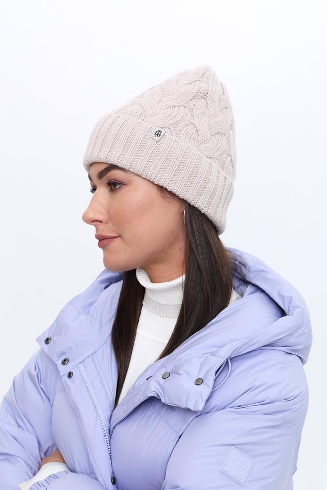 Шапка имеет классический дизайн с выразительной косой, придающей ей элегантный и стильный вид. Бежевый цвет шапки универсален и легко сочетается с различными вариантами верхней одежды и повседневного гардероба.