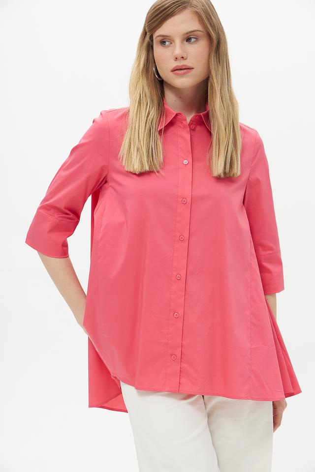 Изысканная блуза Catnoir в насыщенном розовом оттенке – идеальное дополнение вашего гардероба. Изготовленная из высококачественной смесовой ткани (74% хлопок, 3% спандекс, 23% нейлон), эта блуза сочетает в себе комфорт, практичность и элегантность. Блуза рубашечного кроя, застегивается на пуговицы, имеет рукав 3/4 и слегка удлиненную спинку. Эта стильная блузка прекрасно сочетается как с классическими брюками, так и с джинсами, позволяя создавать разнообразные образы.