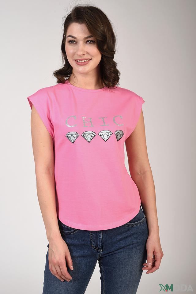 Розовая футболка Pezzo с ярким принтом "CHIC" и оригинальным кроем рукавов. Изготовлена из 100% хлопка, обеспечивая комфорт и воздухопроницаемость. Стильный и удобный выбор для повседневного образа. Состав: хлопок 100%