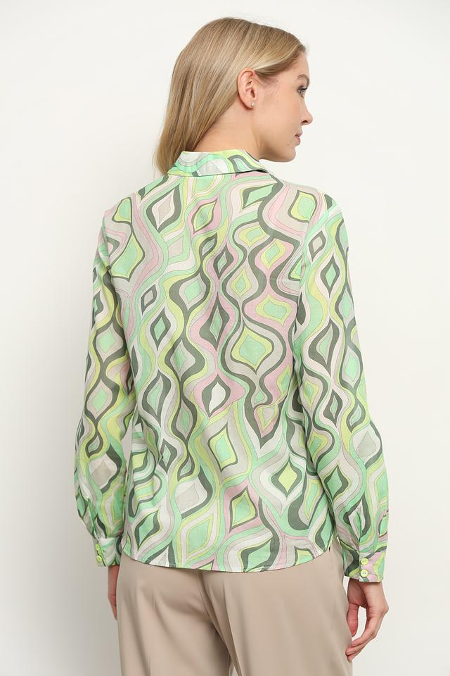Женская рубашка Bianca зеленого цвета с оригинальным принтом в стиле ретро. Модель выполнена из 100% хлопка, обеспечивающего комфорт и воздухопроницаемость. Рубашка станет стильным дополнением к вашему гардеробу. Состав: хлопок 100%