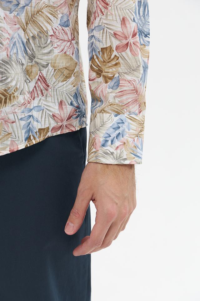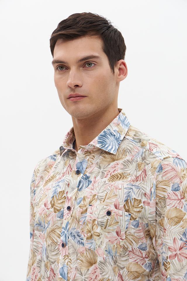 Мужская рубашка Casa Moda светло-бежевого цвета с ярким тропическим принтом станет отличным дополнением к летнему гардеробу. Изготовлена из 100% хлопка, обеспечивающего комфорт и воздухопроницаемость. Состав: хлопок 100%