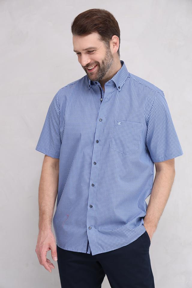 Мужская рубашка Casa Moda голубого цвета в классическую клетку – отличный выбор для создания повседневного образа. Изготовлена из 100% хлопка, обеспечивающего комфорт и воздухопроницаемость. Состав: хлопок 100%