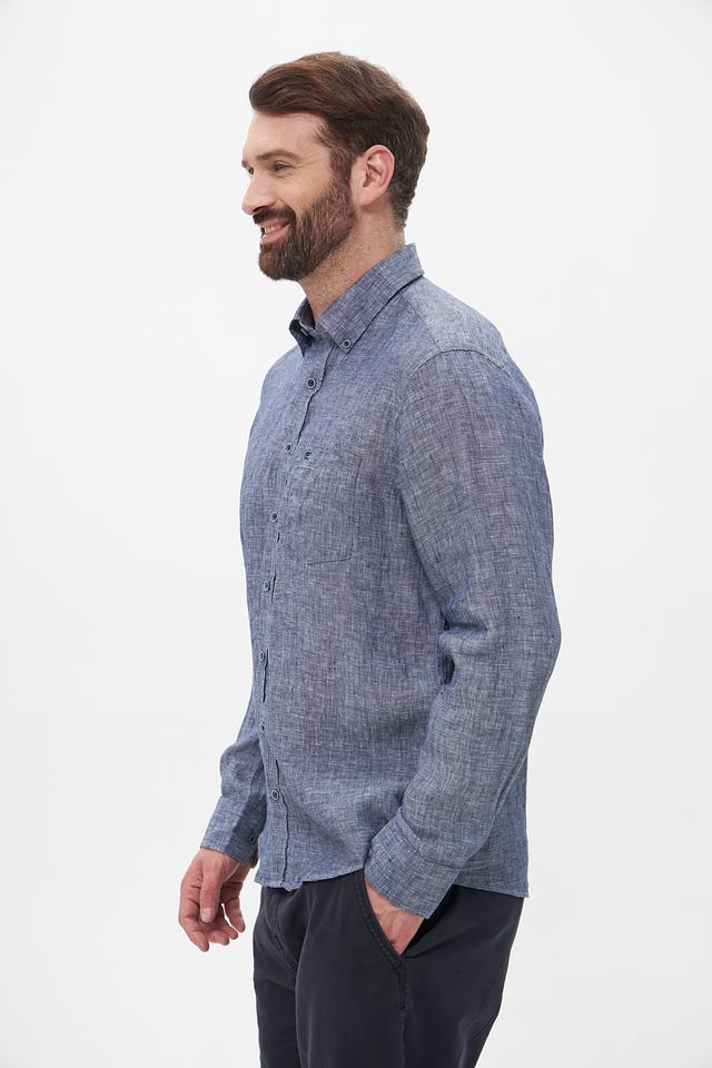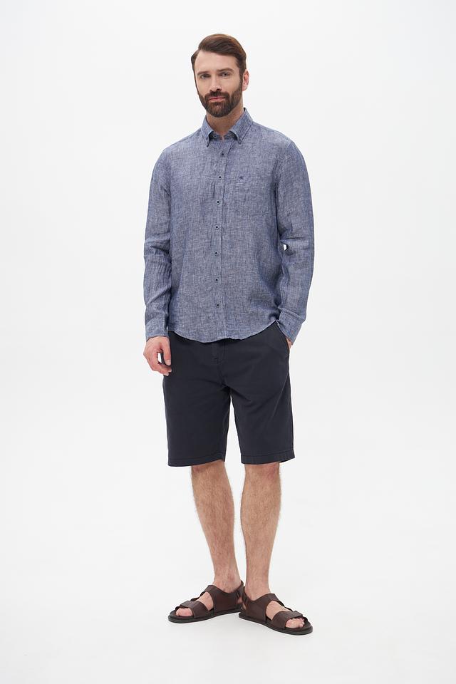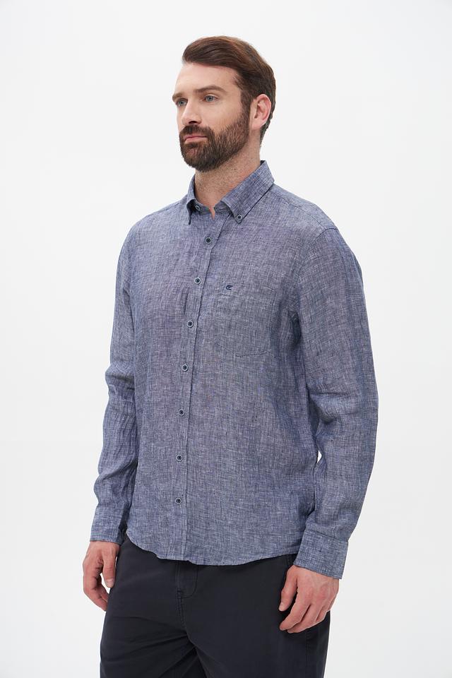 Мужская рубашка Casa Moda синего цвета с длинным рукавом выполнена из 100% льна. Лёгкая и дышащая модель идеально подойдёт для создания повседневных образов в тёплую погоду. Состав: лен 100%
