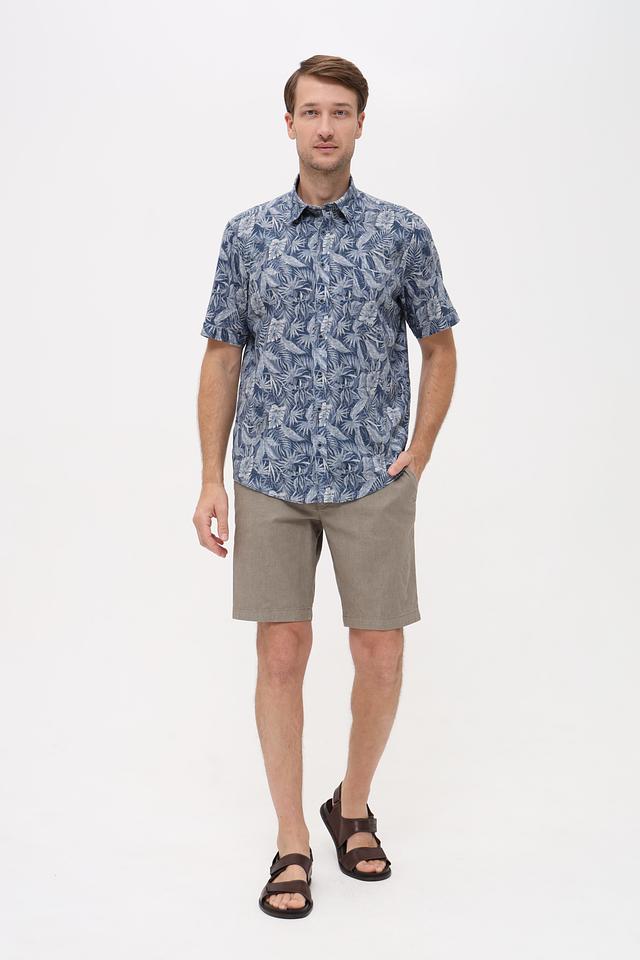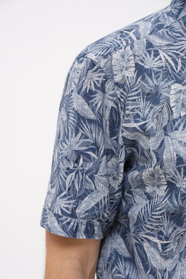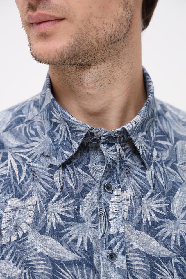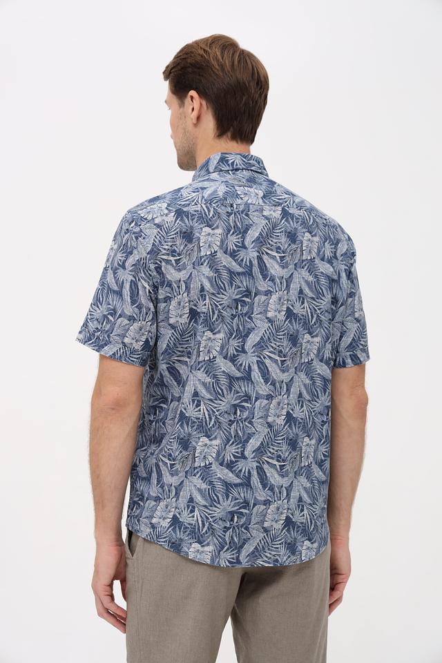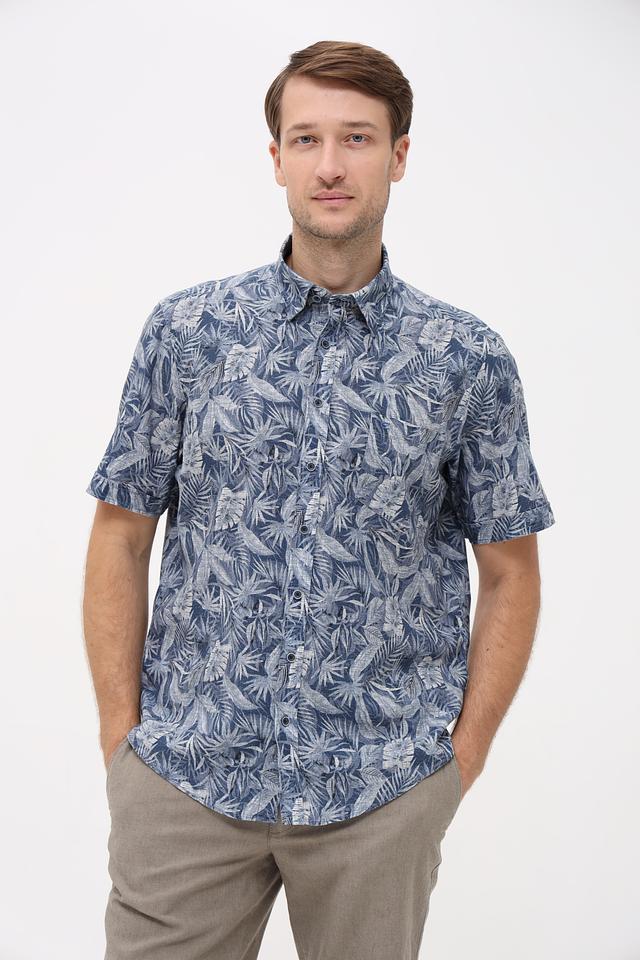 Мужская рубашка Casa Moda синего цвета с коротким рукавом и ярким цветочным принтом. Изготовлена из натурального смесового материала, обеспечивающего комфорт и воздухопроницаемость. Состав: лен 55%, хлопок 45%