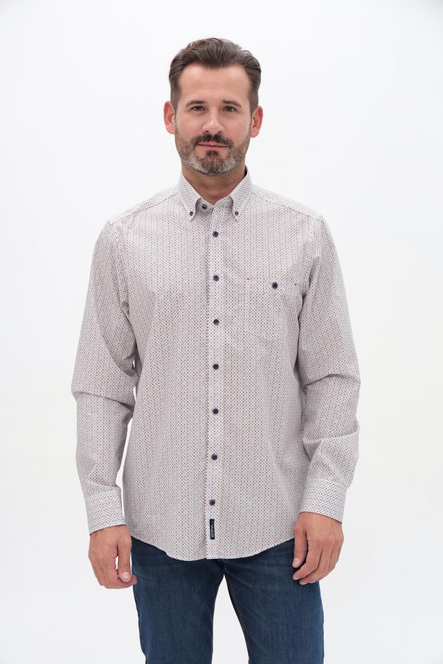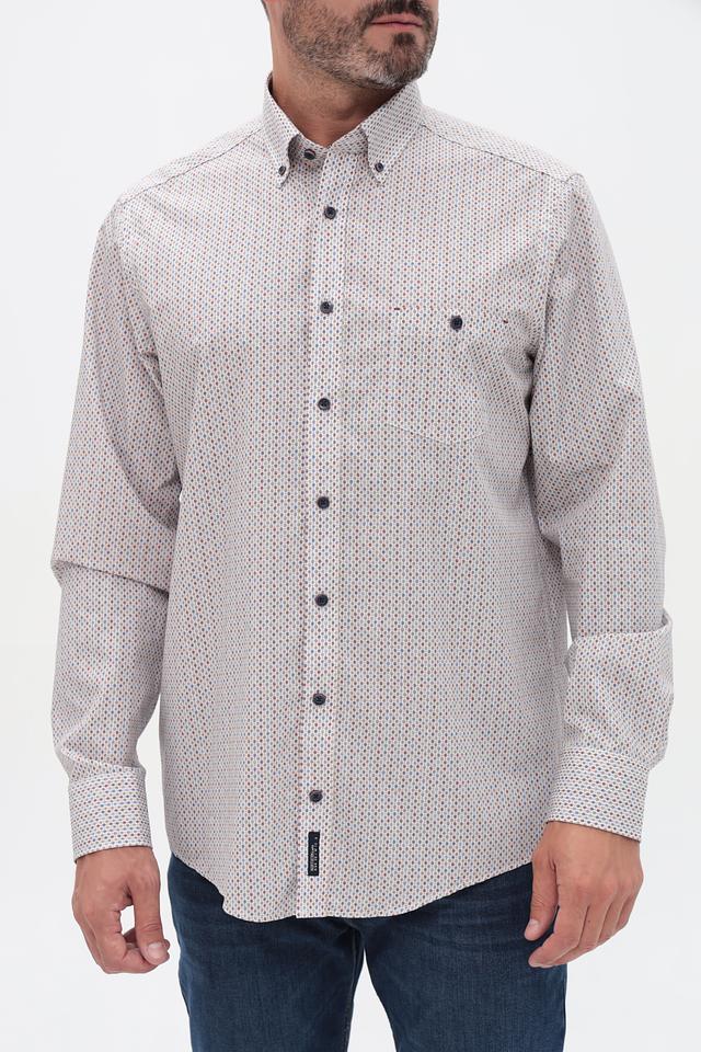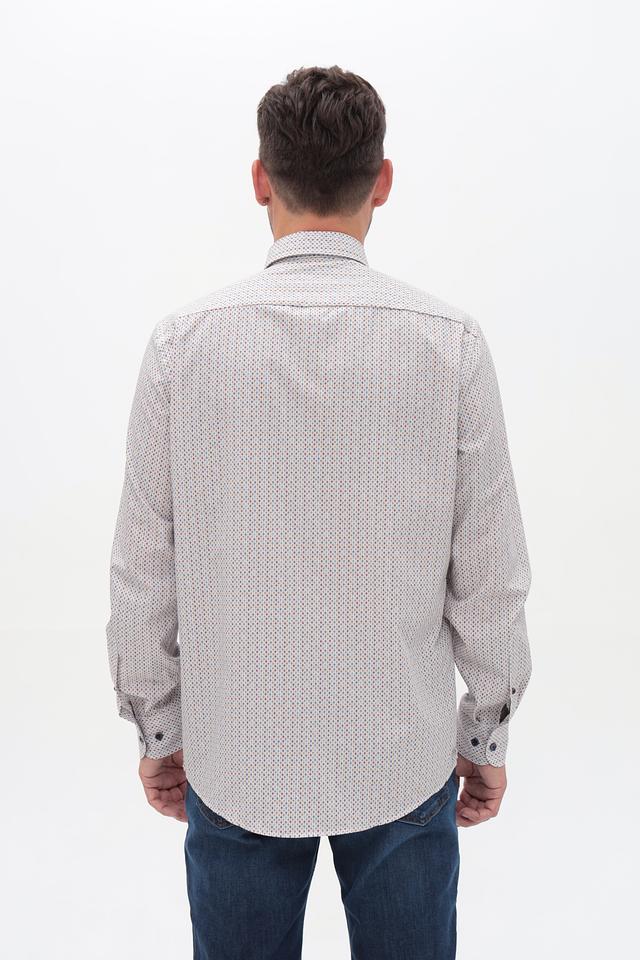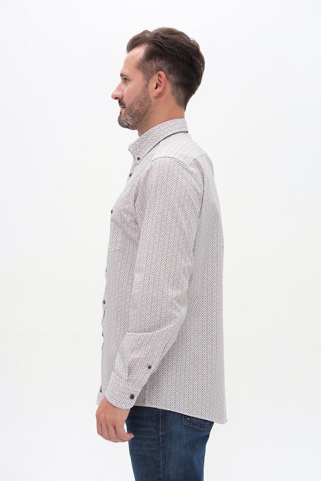 Мужская рубашка Casa Moda серого цвета с мелким геометрическим принтом. Изготовлена из 100% хлопка, обеспечивающего комфорт и воздухопроницаемость. Состав: хлопок 100%