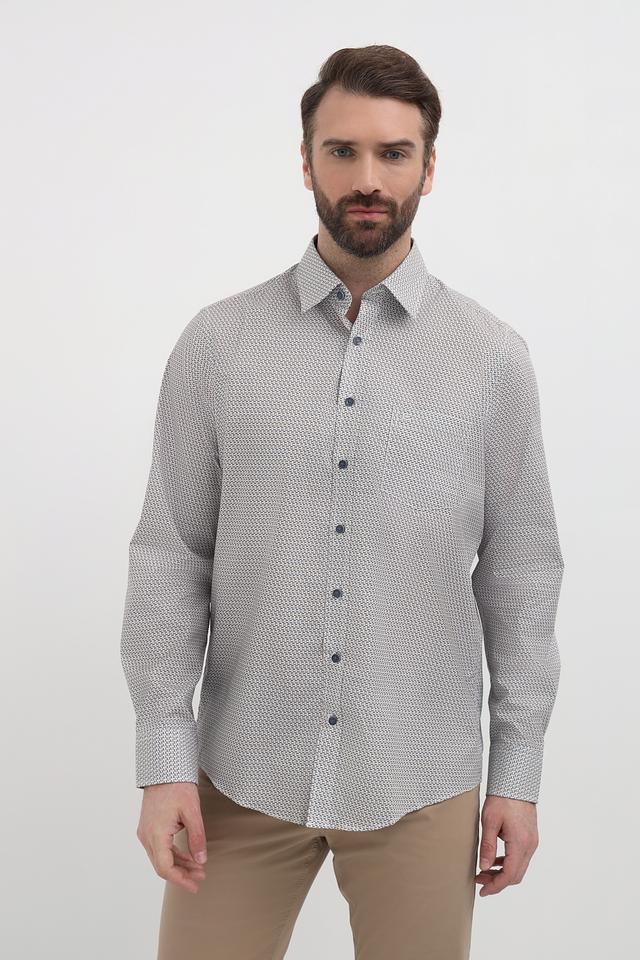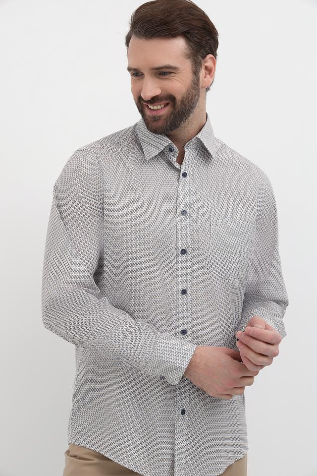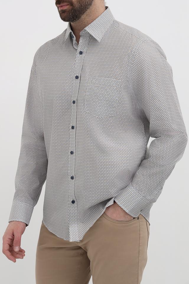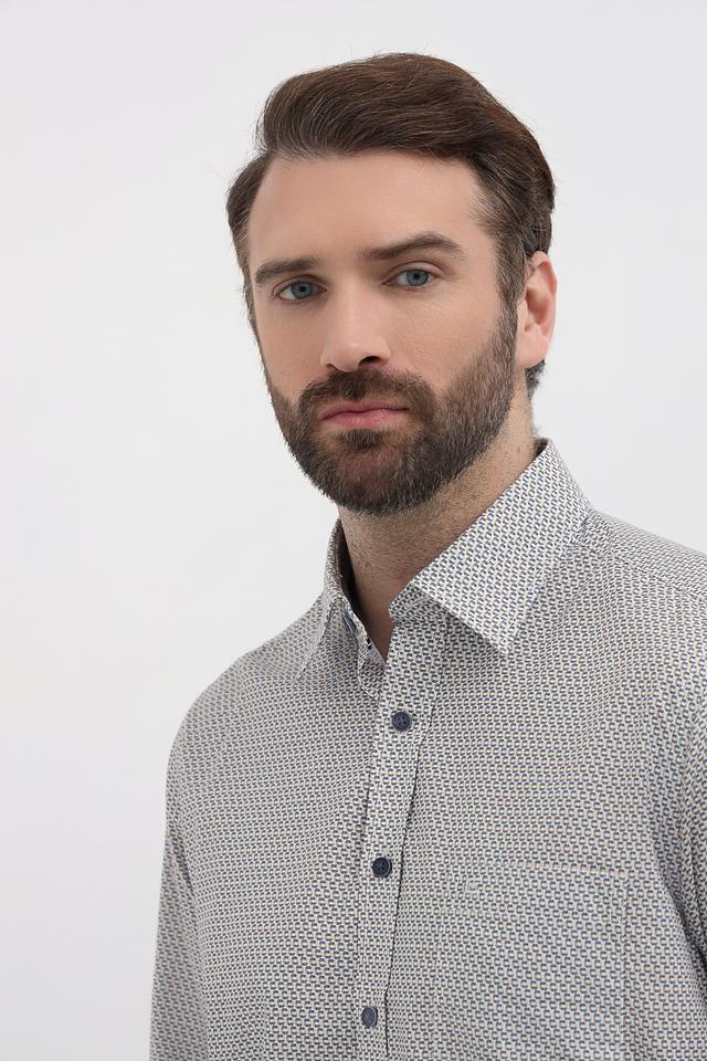 Стильная мужская рубашка Casa Moda серого цвета с мелким геометрическим принтом. Классический крой и длинный рукав делают эту рубашку универсальным дополнением к вашему гардеробу. Изготовлена из 100% хлопка, обеспечивающего комфорт в течение всего дня. Состав: хлопок 100%