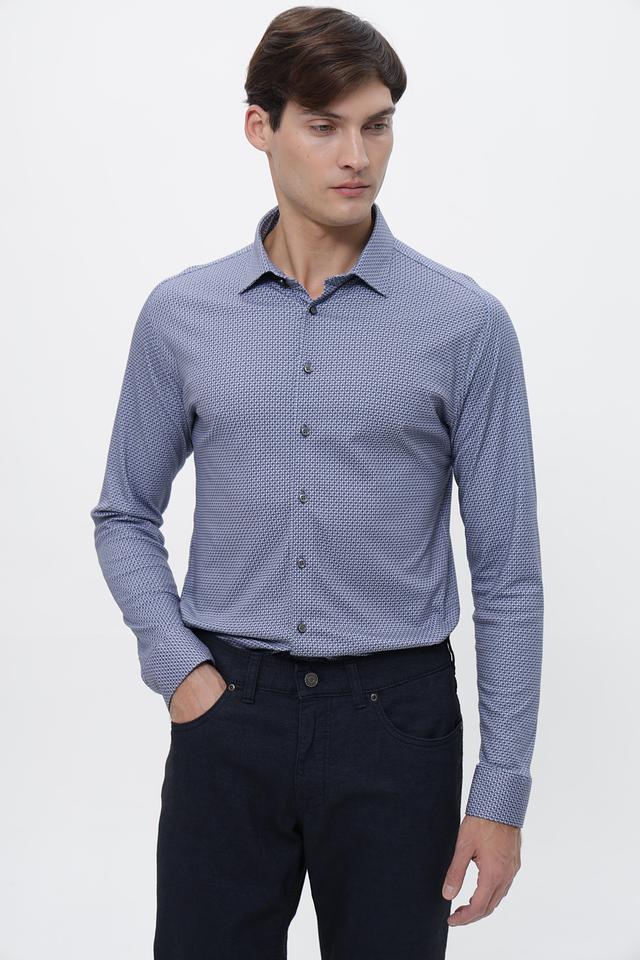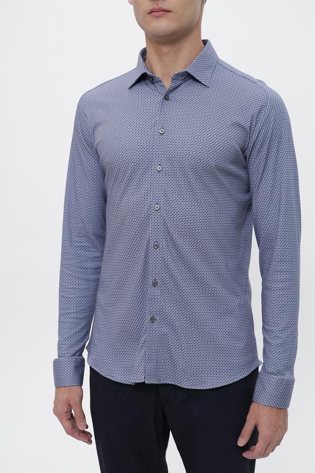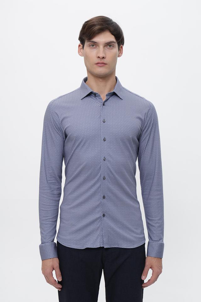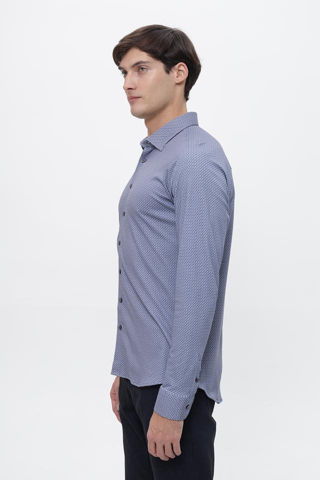 Мужская рубашка Desoto голубого цвета с мелким геометрическим принтом. Изготовлена из 100% хлопка, обеспечивающего комфорт и воздухопроницаемость. Состав: хлопок 100%