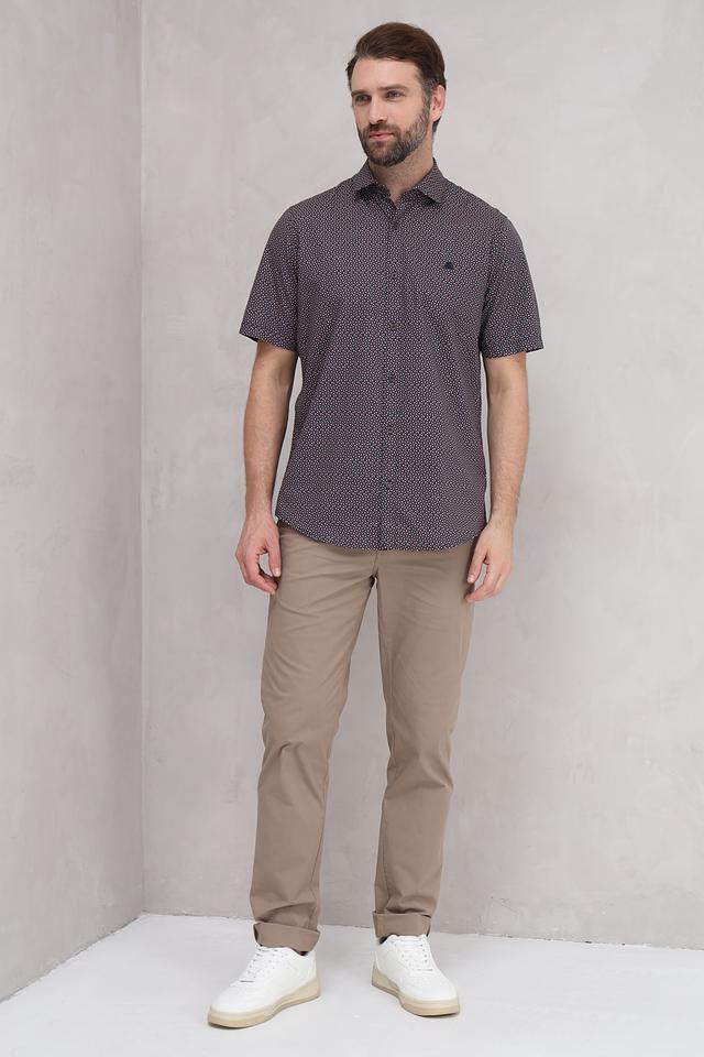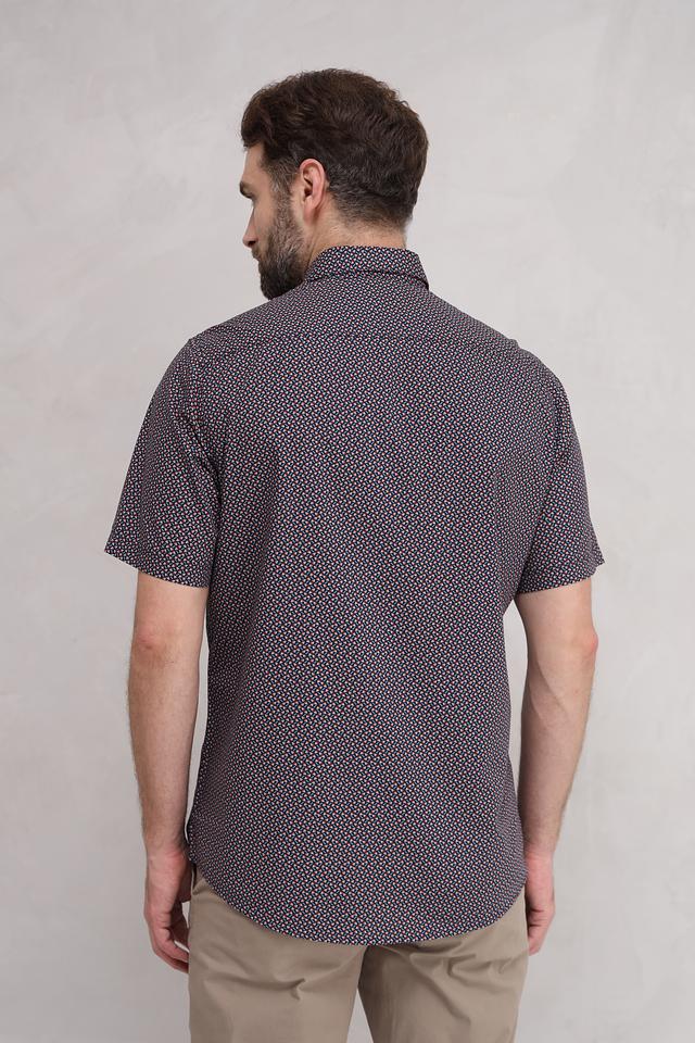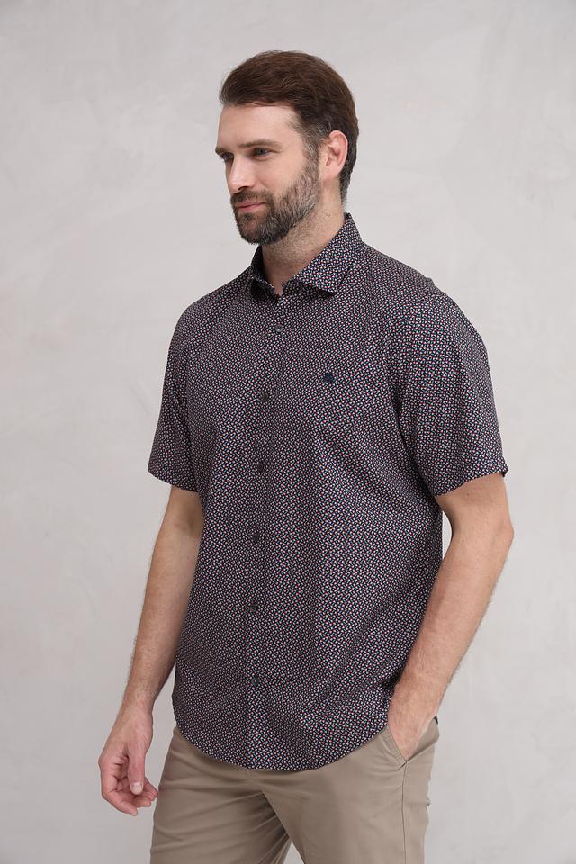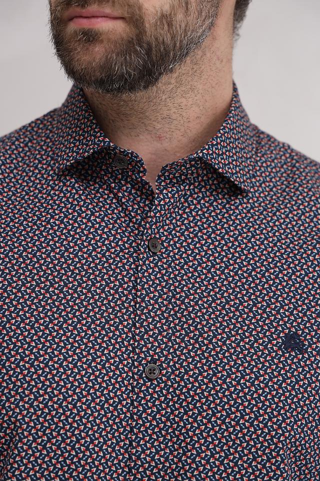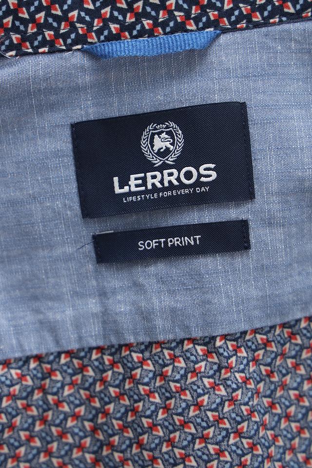 Мужская рубашка Lerros короткого рукава тёмно-синего цвета с оригинальным геометрическим принтом. Изготовлена из 100% хлопка, обеспечивающего комфорт и воздухопроницаемость. Состав: хлопок 100%