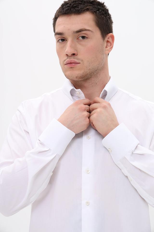 Белый цвет рубашки легко сочетается с различными элементами одежды, позволяя создавать разнообразные стильные образы. Качество пошива и используемых материалов гарантирует долговечность изделия.
