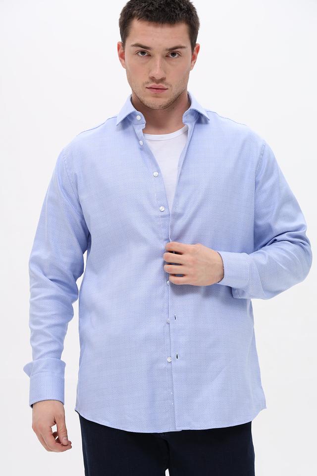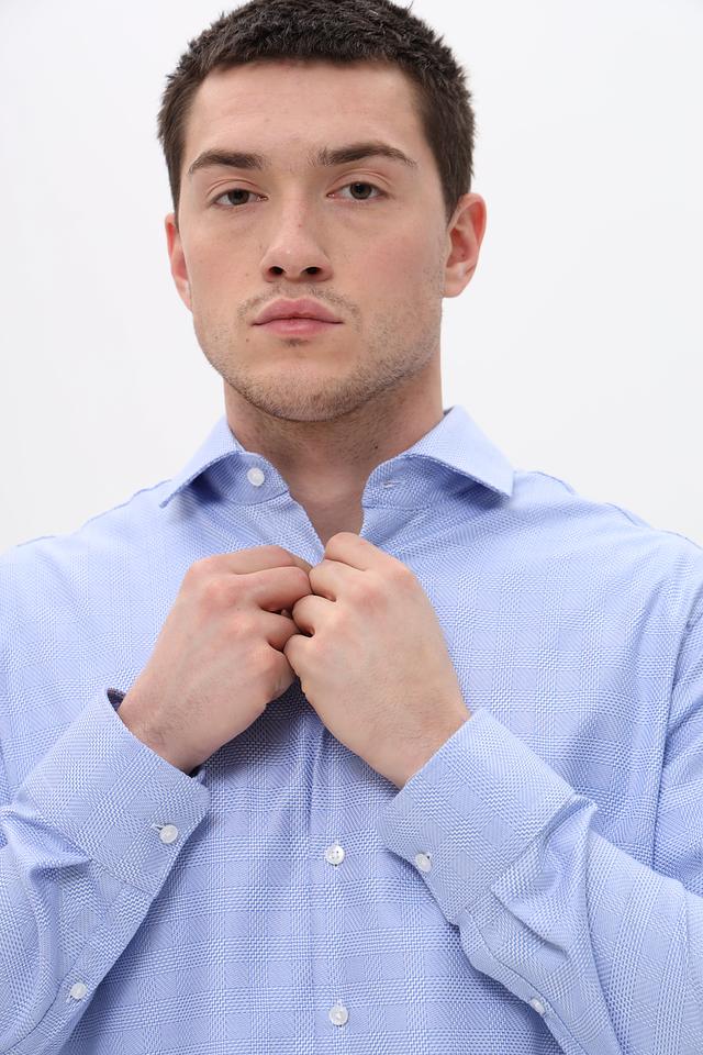 Мужская рубашка Seidensticker голубого цвета с мелким клетчатым рисунком. Изготовлена из 100% хлопка, обеспечивающего комфорт и воздухопроницаемость. Состав: хлопок 100%