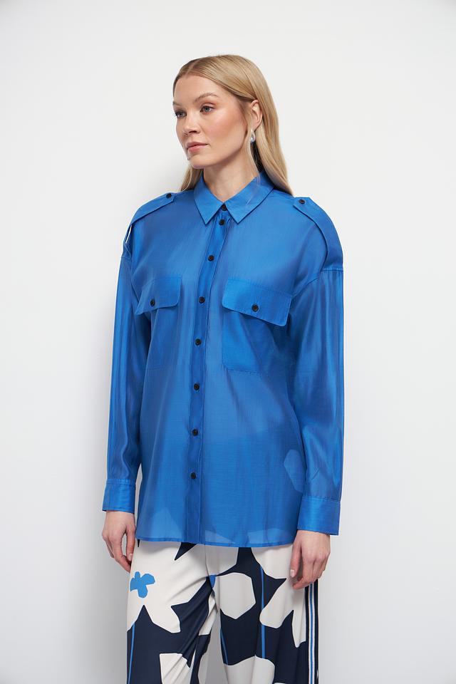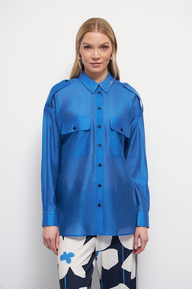 Эта рубашка от Oui станет отличным дополнением к вашему гардеробу. Выполнена в насыщенном синем цвете, она привлекает внимание своим стильным дизайном и качественным пошивом.
