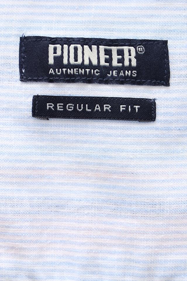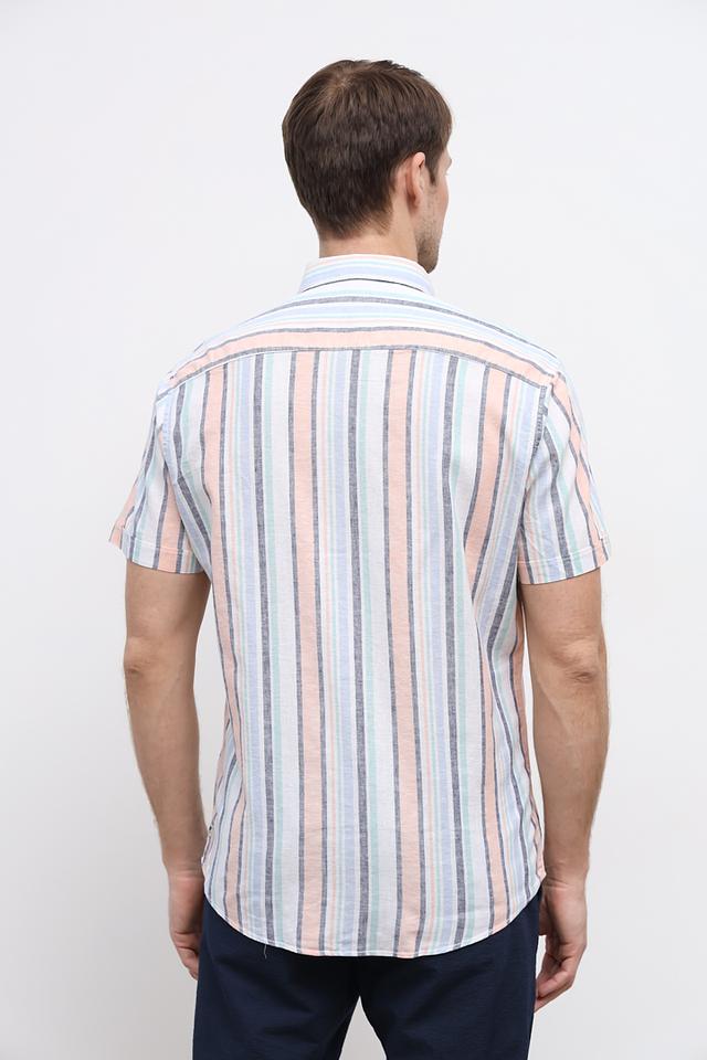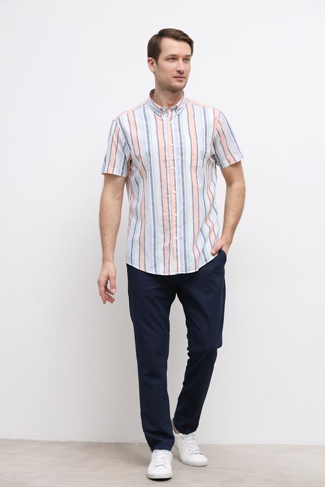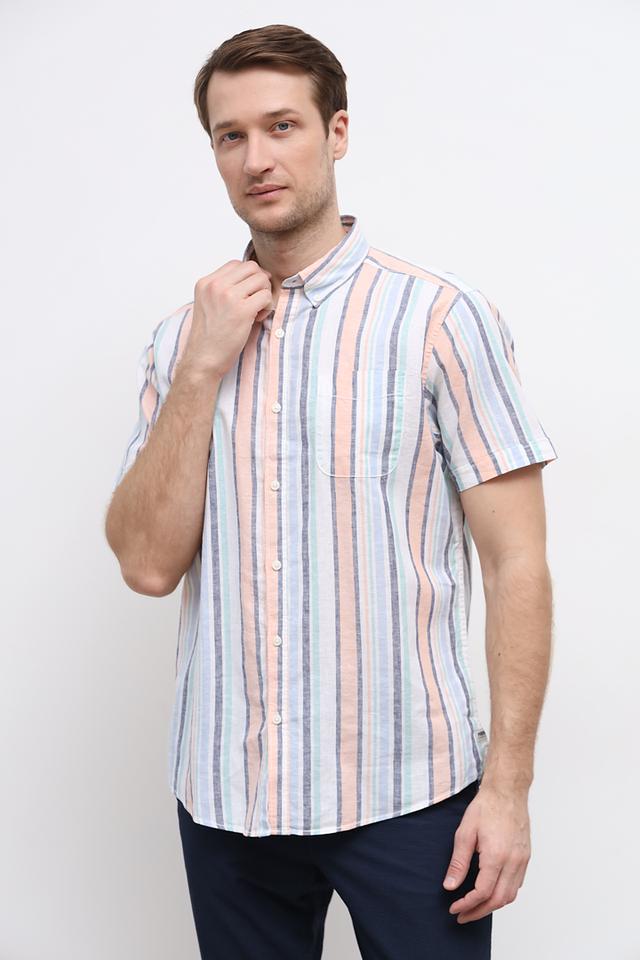 Мужская рубашка Pioneer с коротким рукавом выполнена в светлой полосатой расцветке. Модель из льна и хлопка отличается удобным регулярным кроем и станет отличным выбором для повседневного образа. Состав: лен 55%, хлопок 45%