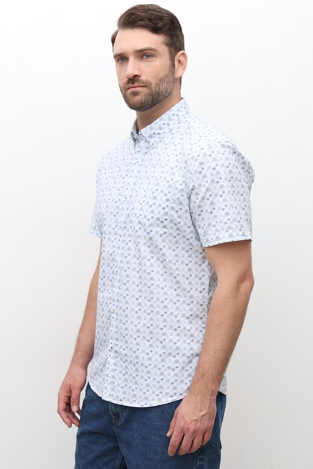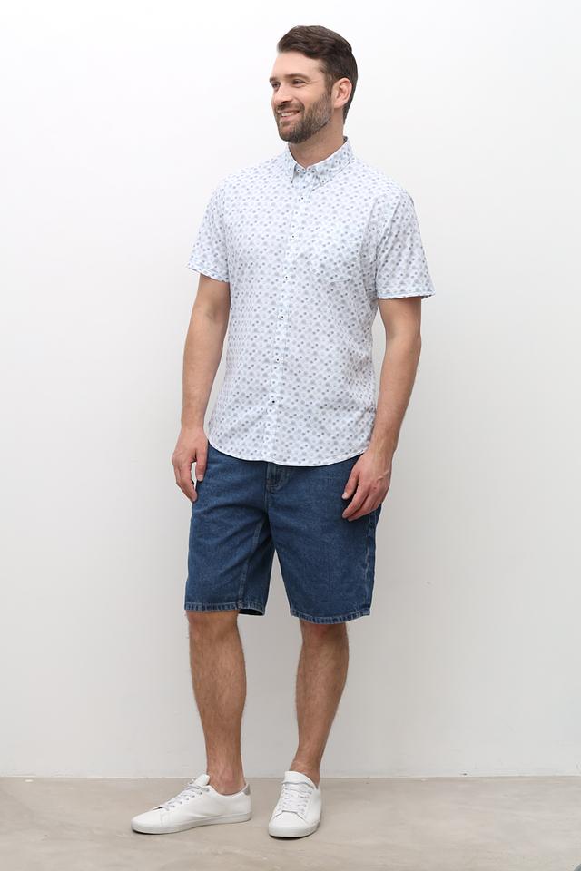 Мужская рубашка Pioneer светло-голубого цвета с коротким рукавом и оригинальным принтом. Изготовлена из 100% хлопка, обеспечивающего комфорт и воздухопроницаемость. Идеальный выбор для создания стильного повседневного образа. Состав: хлопок 100%