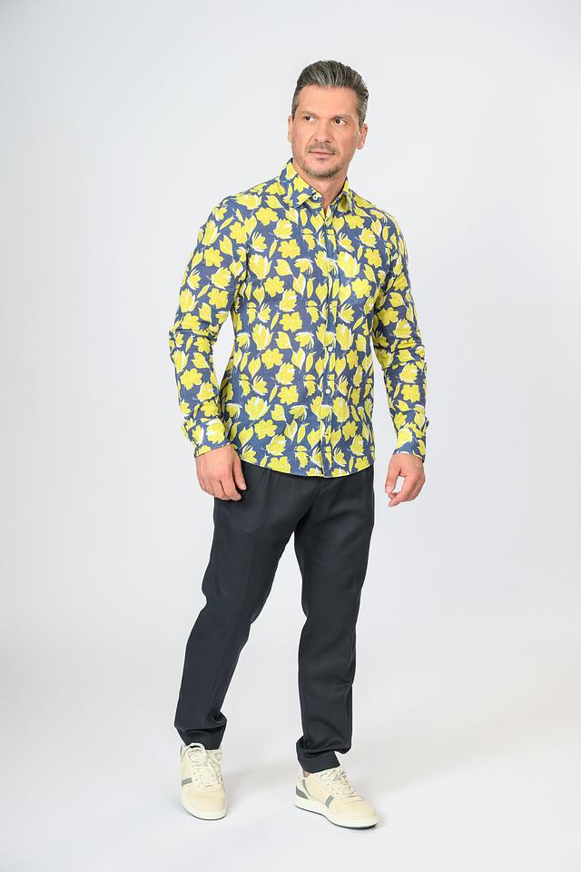 Эта рубашка от Joop! – отличный выбор для тех, кто ценит комфорт и стиль. Выполнена в синем цвете и украшена ярким принтом из жёлтых цветов, что придает ей оригинальность и свежесть.
