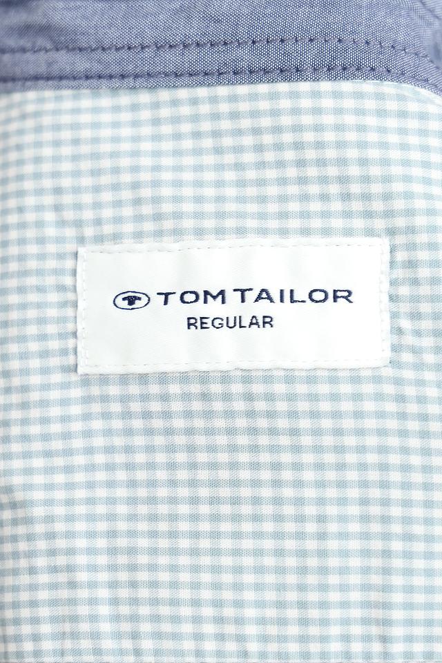На левом нагрудном кармане размещена фирменная бирка Tom Tailor с логотипом и надписью 'Regular'. Рубашка идеально подходит для создания повседневных образов, а также для более формальных мероприятий в сочетании с брюками и пиджаком.