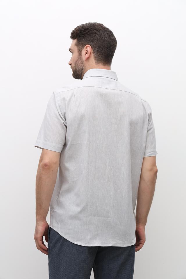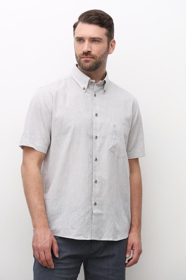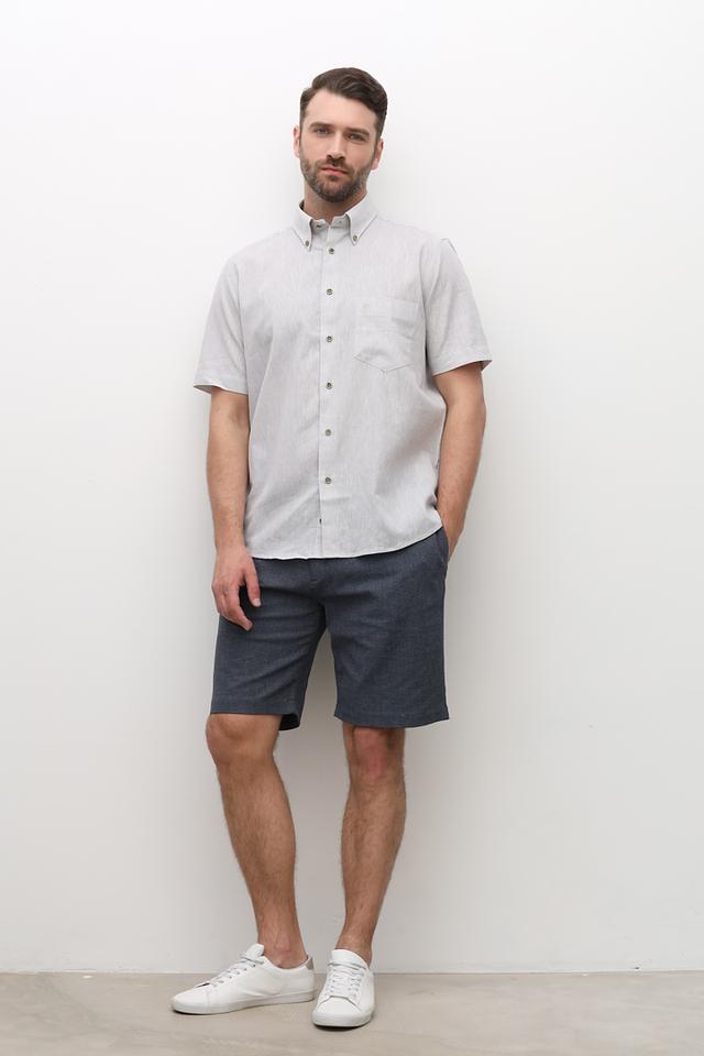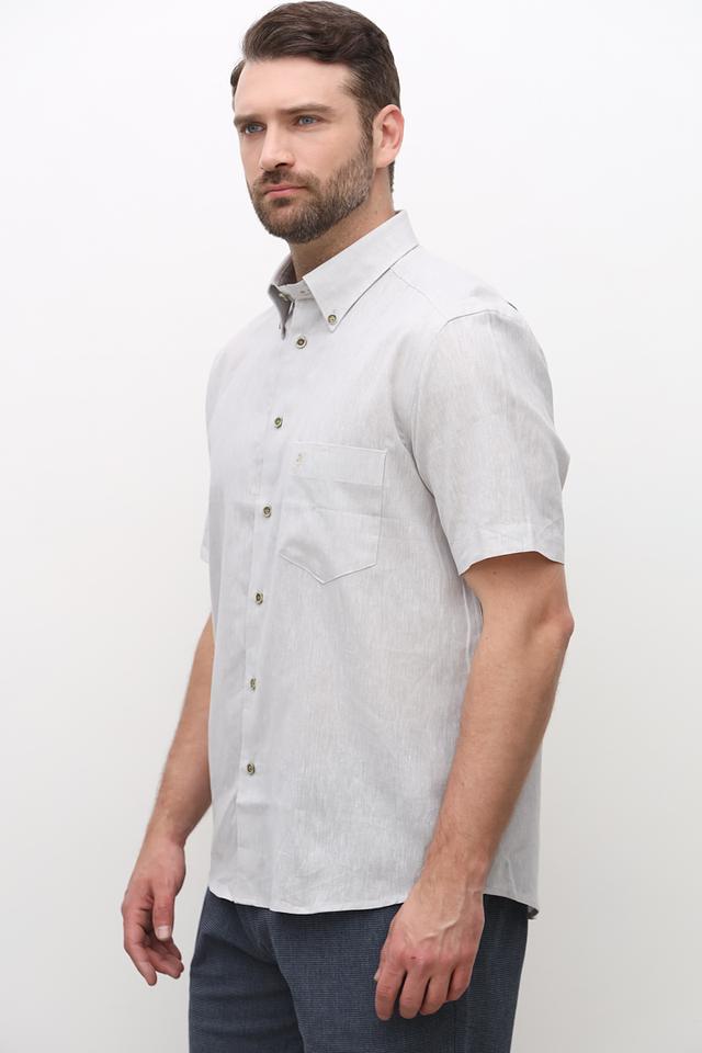 Рубашка имеет классический крой с короткими рукавами и воротником на пуговицах. Изготовлена из высококачественного смесового материала – 55% льна и 45% хлопка, что обеспечивает комфорт, воздухопроницаемость и легкость в уходе.