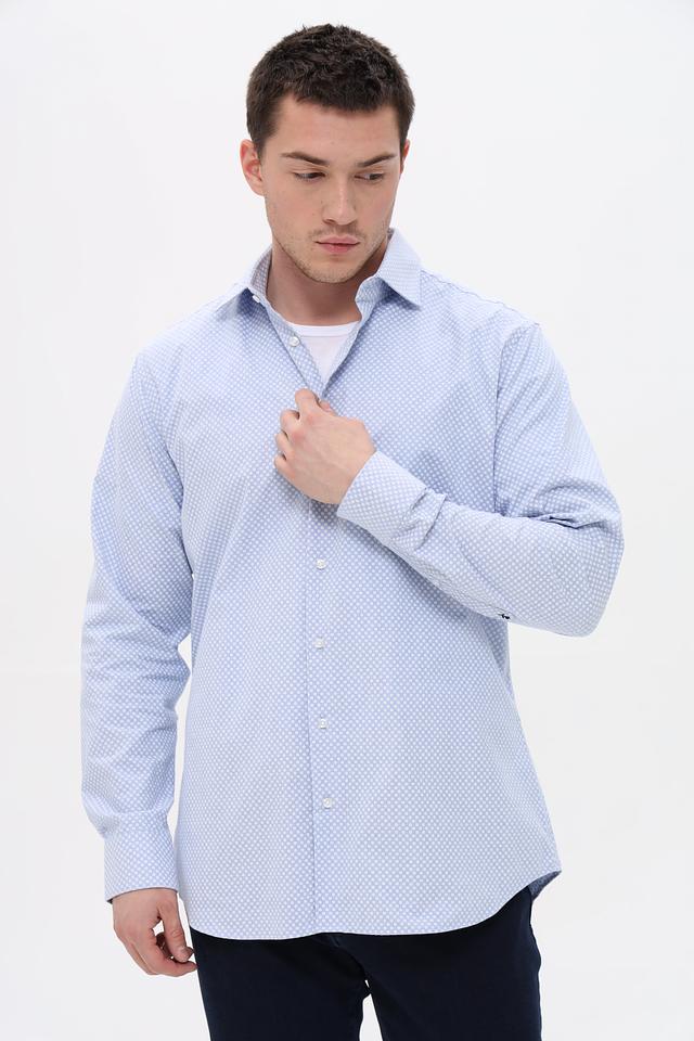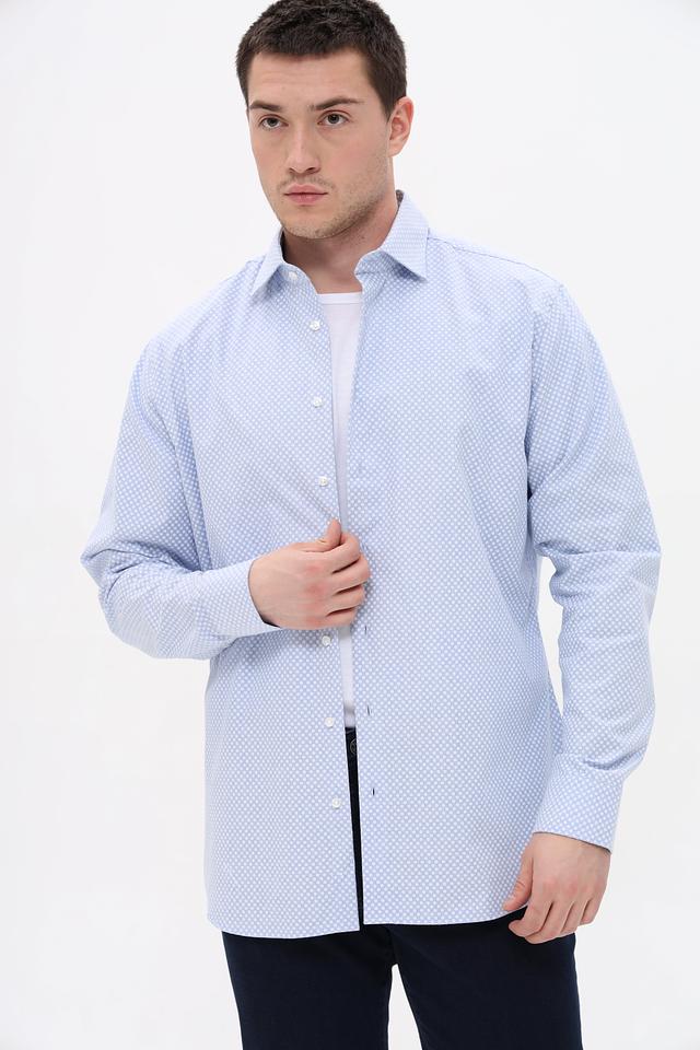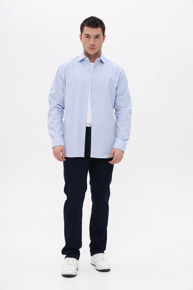 Мужская рубашка Seidensticker голубого цвета с мелким рисунком в клетку. Изготовлена из 100% хлопка, обеспечивающего комфорт и воздухопроницаемость. Состав: хлопок 100%
