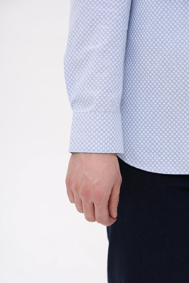 Рубашка имеет классический крой с длинными рукавами и воротником на пуговицах. Она изготовлена из высококачественного 100% хлопка, что обеспечивает комфорт при носке и хорошую воздухопроницаемость.