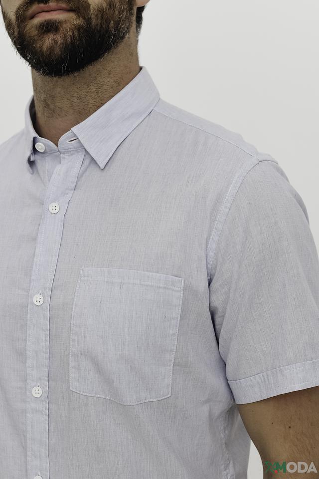 Детали, такие как воротник на пуговицах и нагрудный карман, добавляют рубашке аккуратный и стильный вид. Текстура ткани с лёгкой "помятостью" придает ей непринужденный вид. Эта рубашка идеально подходит для повседневной носки, отдыха или неформальных встреч.