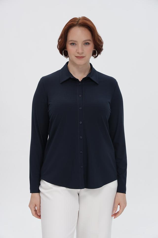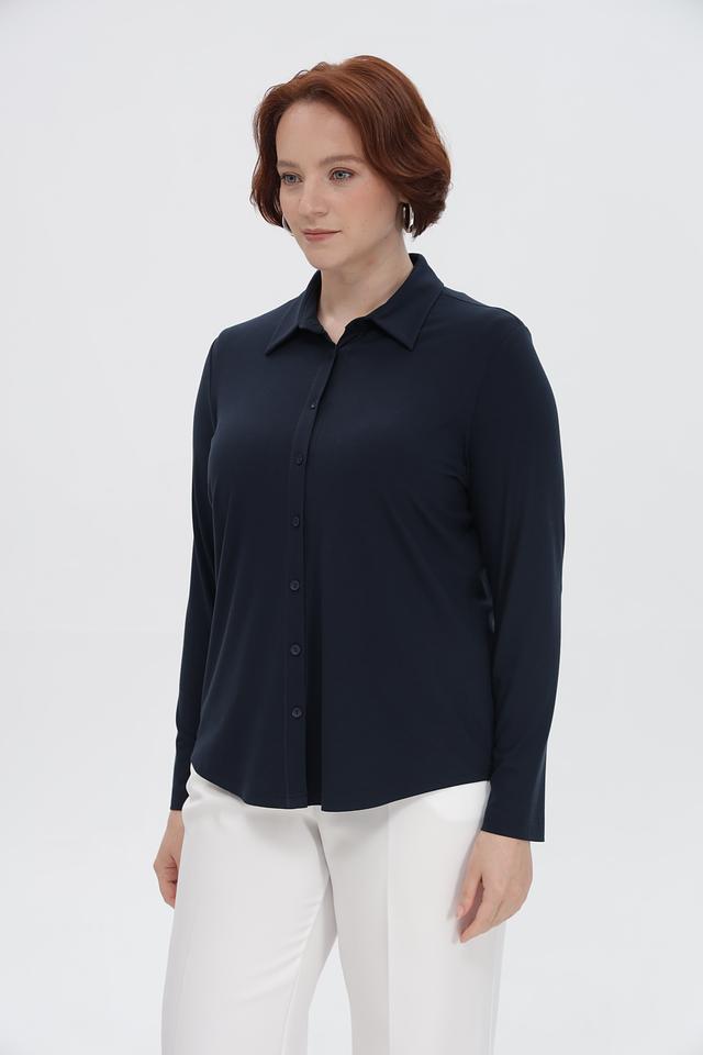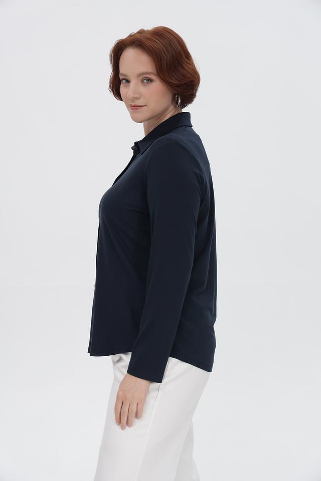 Рубашка имеет приталенный силуэт, который подчеркивает достоинства фигуры. Длинные рукавы и классический воротник делают её универсальной для различных случаев. Застежка на пуговицы обеспечивает удобство ношения.