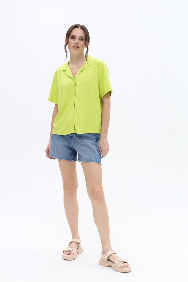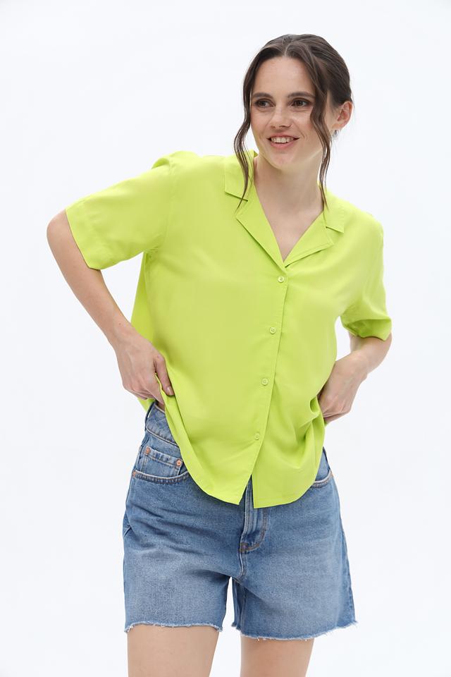Женская рубашка Tom Tailor лаймового цвета с коротким рукавом – стильное и комфортное решение для летнего гардероба. Изготовлена из мягкой вискозы, обеспечивающей приятные ощущения при носке и отличную воздухопроницаемость. Состав: вискоза 100%