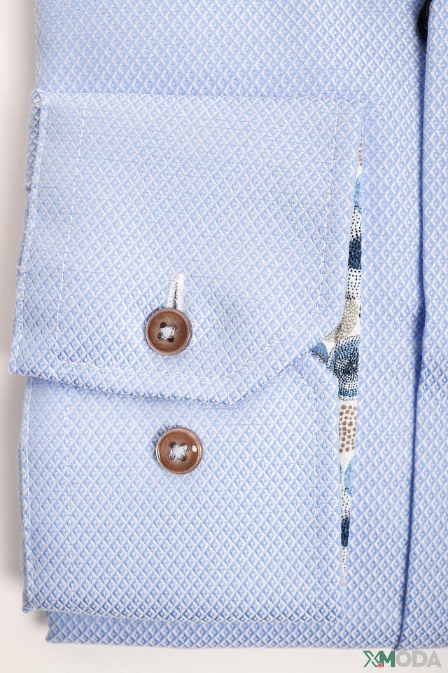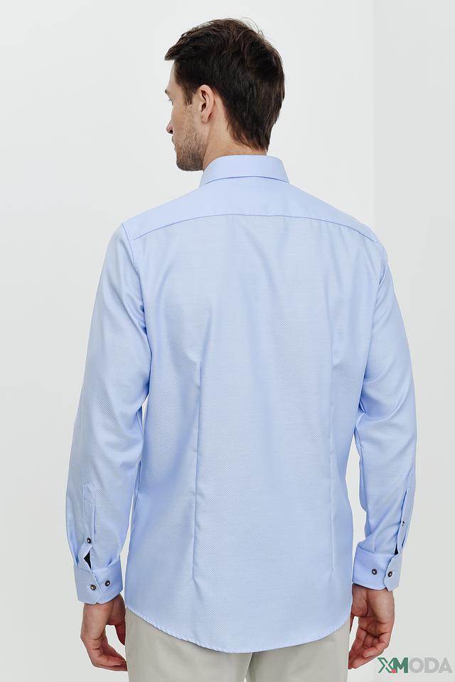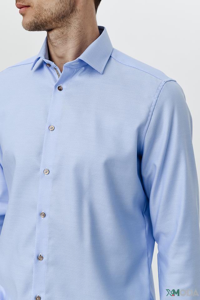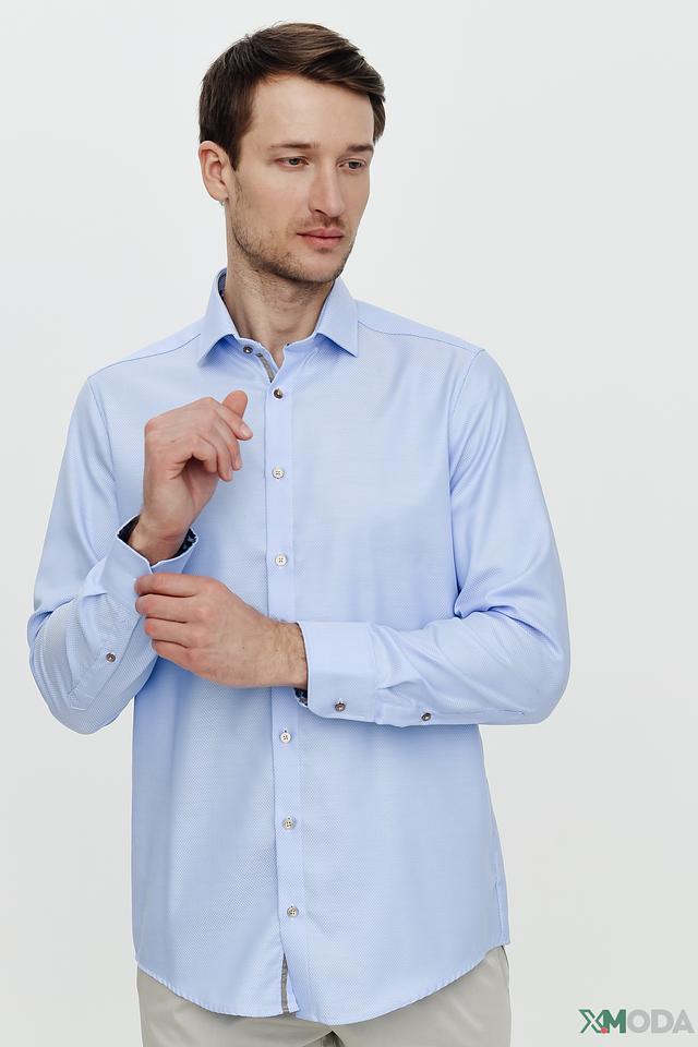 Нежный голубой цвет делает эту рубашку универсальной и подходящей для различных случаев – от деловых встреч до повседневной носки. Текстурированная поверхность ткани придает рубашке особый шарм.