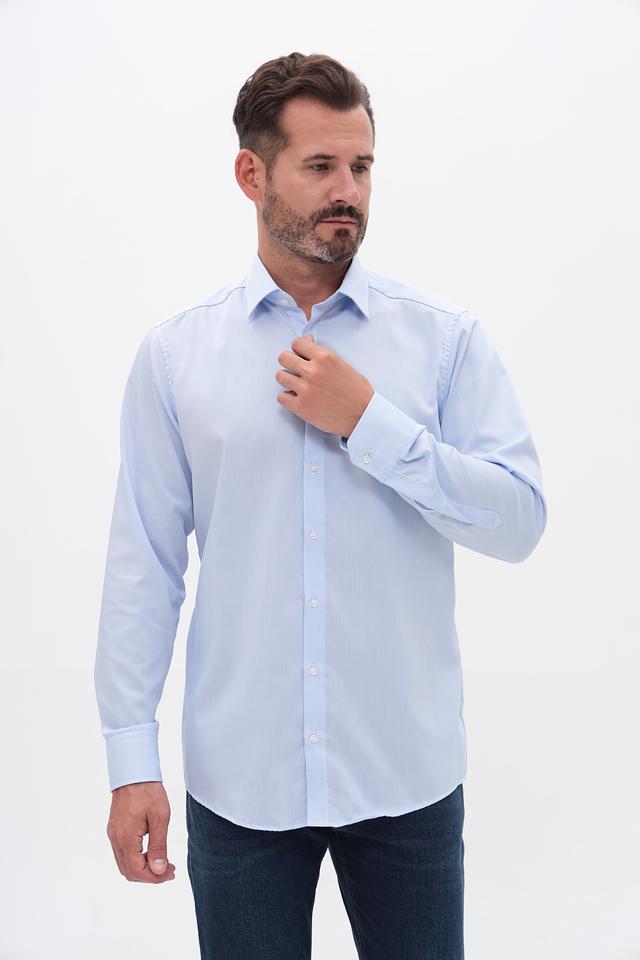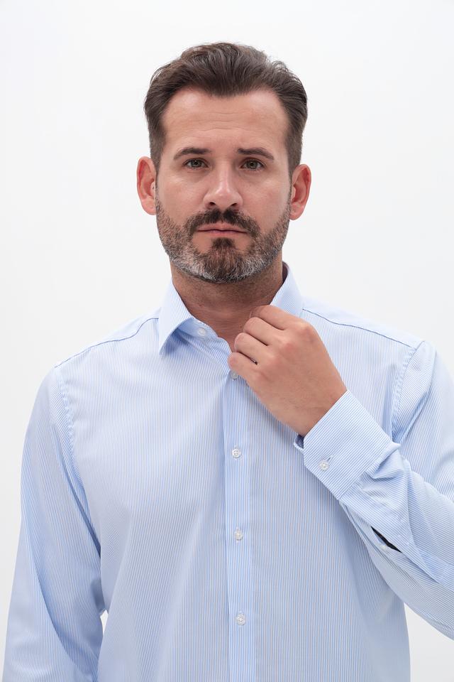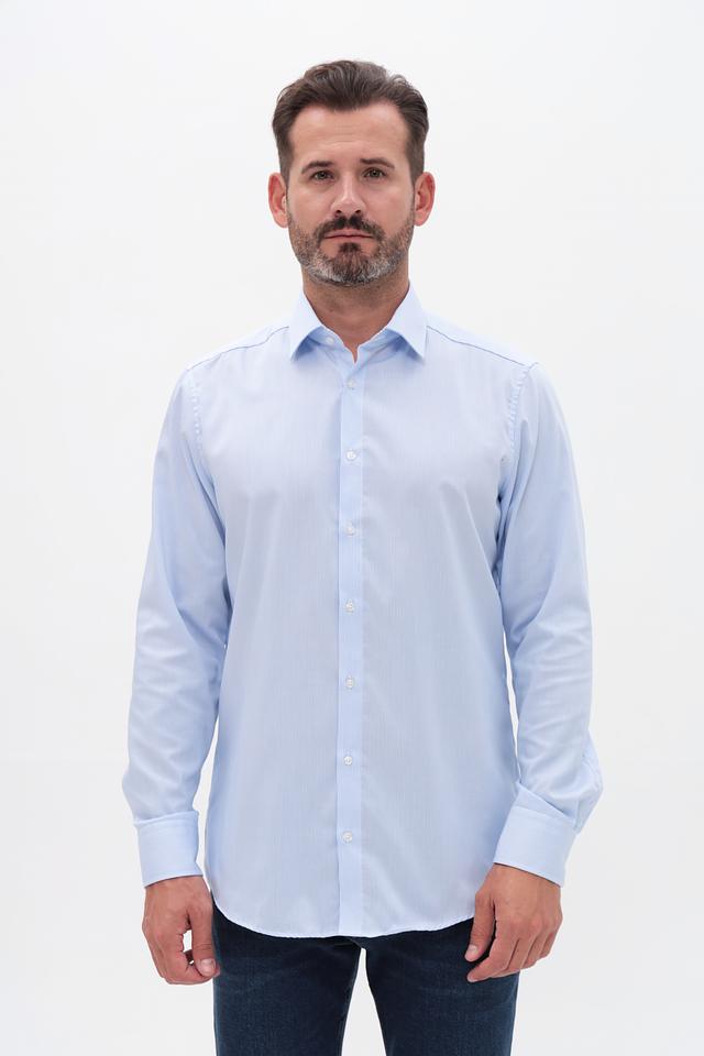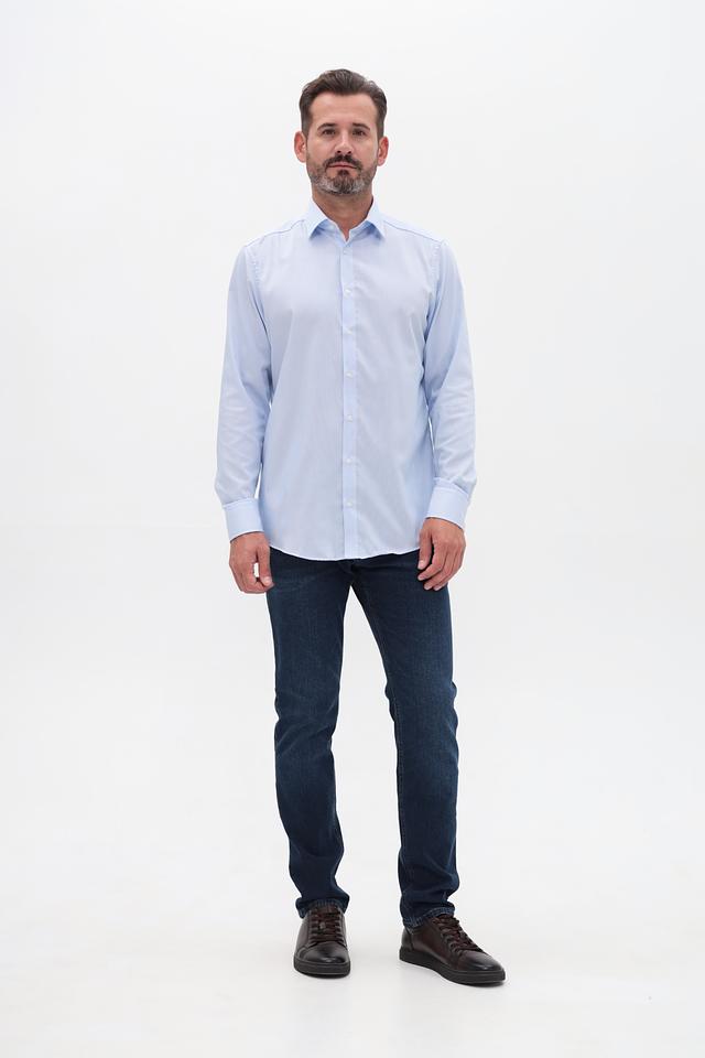Рубашка имеет классический крой, который подходит для большинства типов фигур. Длинные рукава с манжетами на пуговицах позволяют регулировать посадку по руке. Воротник рубашки выполнен в классическом стиле, что делает ее подходящей для ношения с галстуком или без.