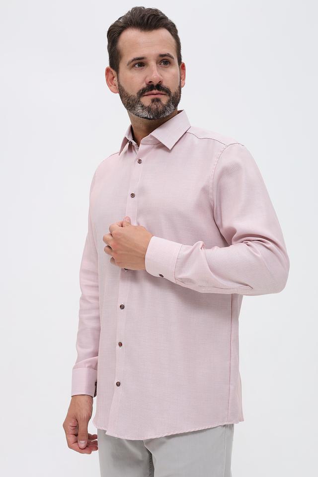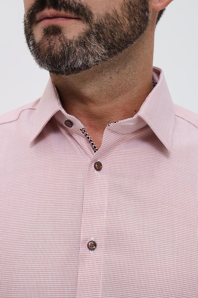 Мужская рубашка Venti нежно-розового цвета с мелким рисунком в клетку. Изготовлена из 100% хлопка, обеспечивающего комфорт и воздухопроницаемость. Классический крой и приталенный силуэт. Состав: хлопок 100%