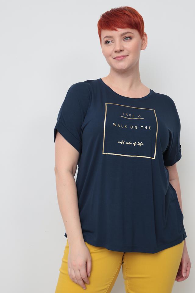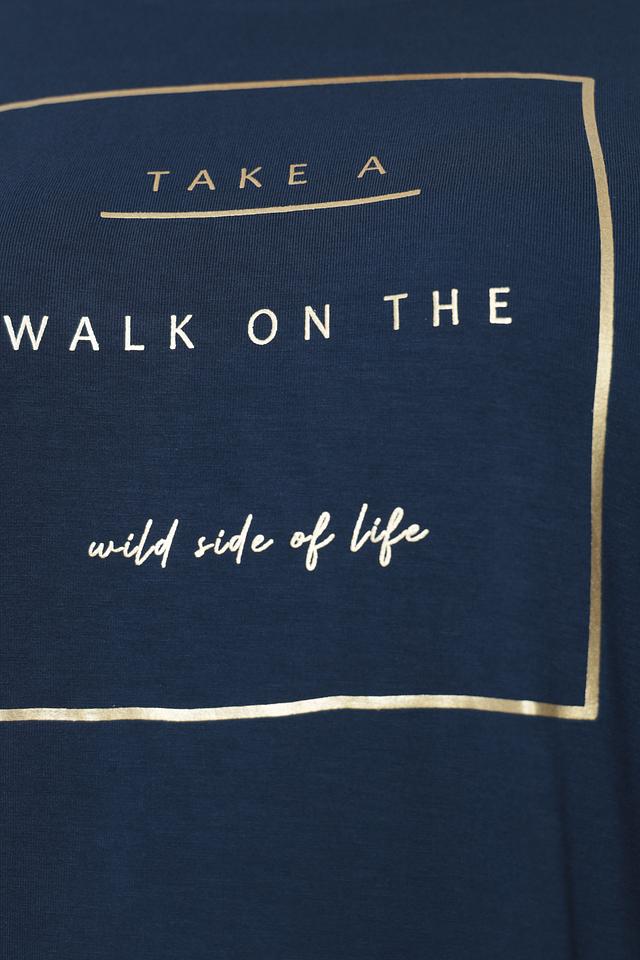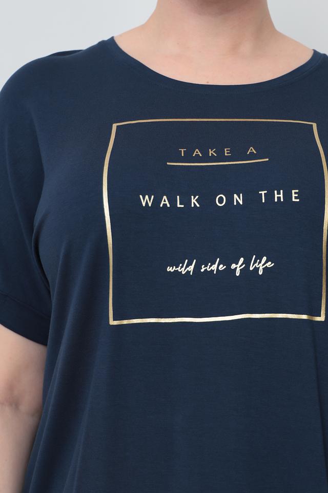 Особый акцент в этой модели – стильный золотистый принт с надписью "TAKE A WALK ON THE WILD SIDE OF LIFE". Этот принт добавляет футболке индивидуальности и делает ее более интересной.