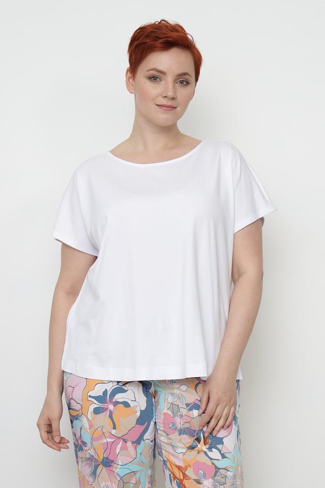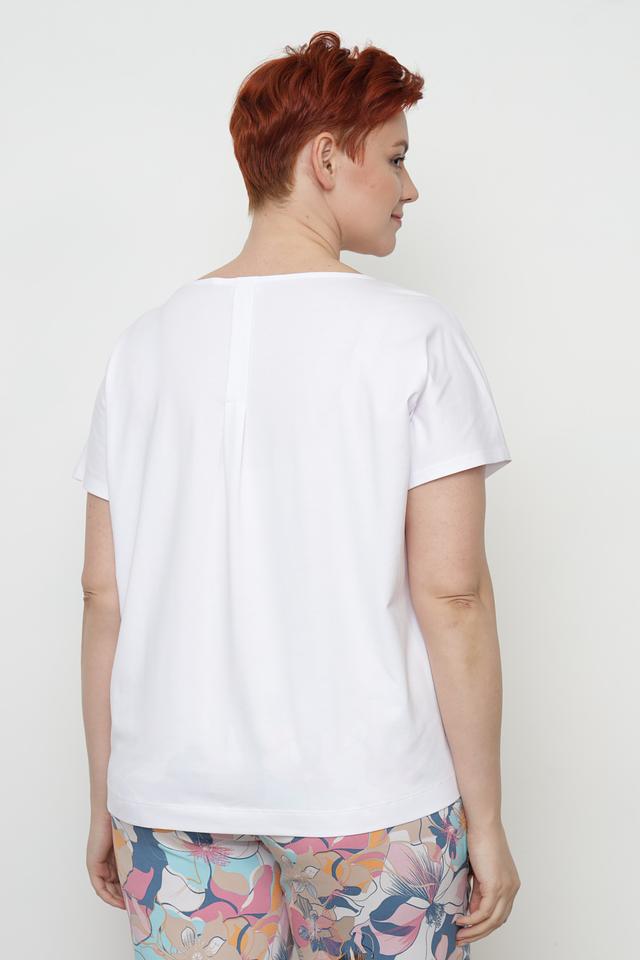 Белая футболка Samoon из мягкого трикотажа станет отличной базой для вашего гардероба. Модель свободного кроя с короткими рукавами обеспечит комфорт в течение дня. Состав: лиоцел, хлопок, эластан. Состав: лиоцел 65%, хлопок 30%, эластан 5%