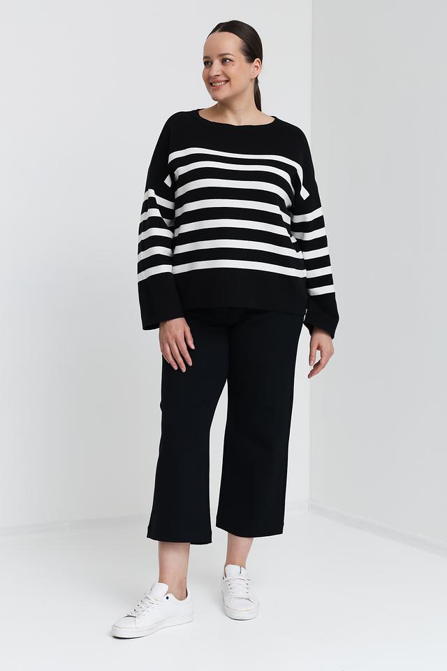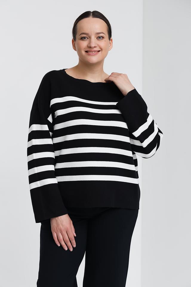 Чёрный пуловер Samoon с белыми полосами – это стильная и комфортная модель из 100% органического хлопка. Свободный крой и округлый вырез горловины делают этот пуловер универсальным дополнением к вашему гардеробу. Состав: хлопок органич. 100%