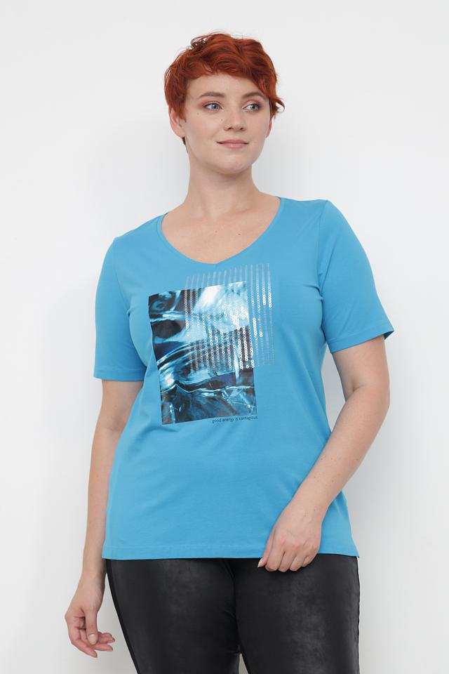 Бирюзовая футболка Samoon с оригинальным принтом – отличный выбор для создания комфортного и стильного образа. Изготовлена из мягкого органического хлопка с добавлением эластана, обеспечивающего удобную посадку. Состав: хлопок органич. 95%, эластан 5%