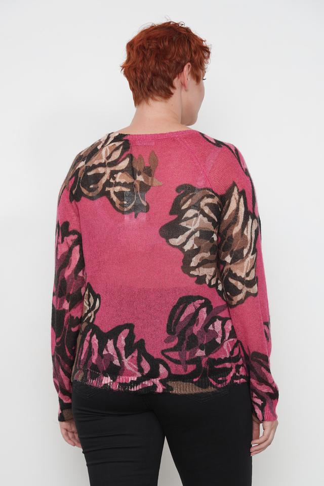 Женский пуловер Samoon фуксии с ярким цветочным принтом станет стильным дополнением к вашему гардеробу. Модель выполнена из мягкого трикотажа с добавлением мохера, что придает ей особую фактуру и уют. Состав: полиакрил 57%, полиамид 33%, эластан 5%, мохер 5%