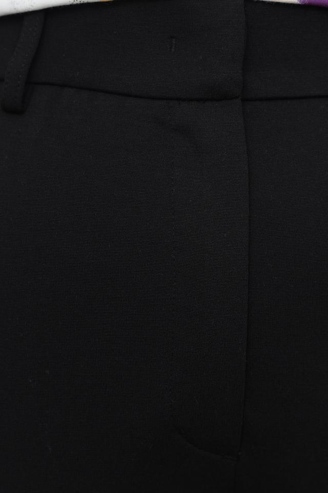 Состав ткани: 61% вискоза, 35% полиамид, 4% эластан. Вискоза придает брюкам мягкость и приятные тактильные ощущения, полиамид обеспечивает износостойкость, а эластан — комфортную посадку и свободу движений. Брюки легко драпируются и не мнутся.
