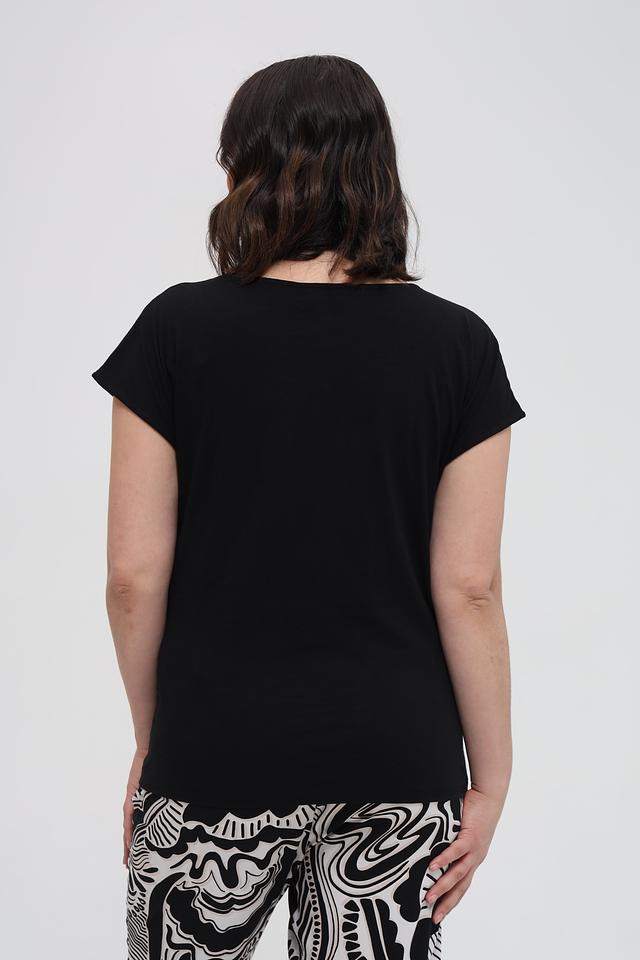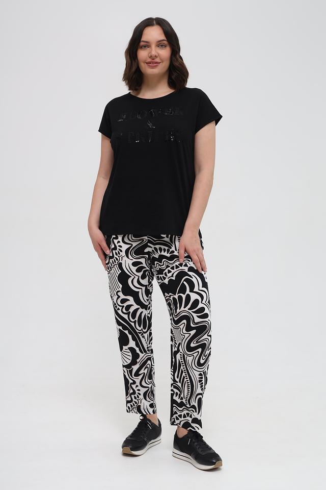 Чёрная футболка Samoon с оригинальным декором из пайеток. Модель выполнена из мягкого хлопка, обеспечивающего комфорт в носке. Стильный и удобный вариант для повседневного образа. Состав: хлопок 100%