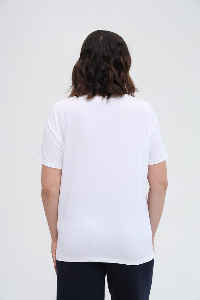 Эта белая футболка от Samoon станет отличным дополнением к вашему гардеробу. Она выполнена из высококачественного модала, хлопка и эластана, что обеспечивает комфорт и удобство в носке.