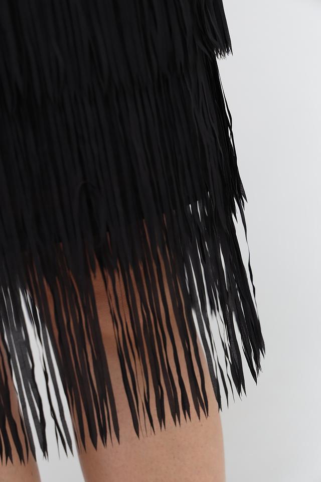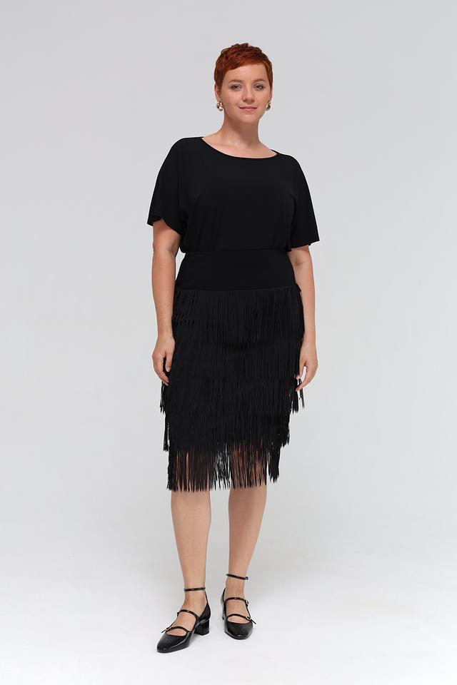 Чёрная юбка Samoon с многослойной бахромой. Изготовлена из полиэстера с подкладкой из вискозы и эластана, обеспечивающей комфорт и удобство в носке. Состав: полиэстер 95%, Состав_подкладка вискоза 95%, эластан 5%, Состав_подкладка эластан 5%