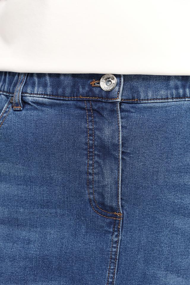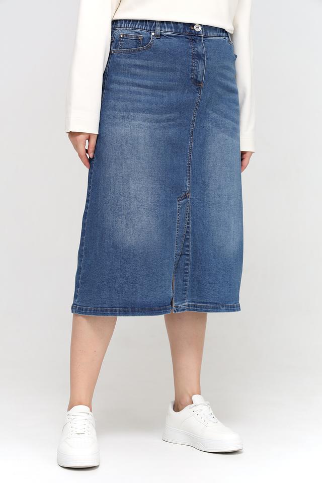 Джинсовая юбка Samoon миди длины выполнена в классическом синем цвете. Модель с эластичным поясом и небольшим разрезом спереди обеспечит комфорт и свободу движений. Состав: хлопок 72%, переработ.полиэстер 27%, эластан 1%