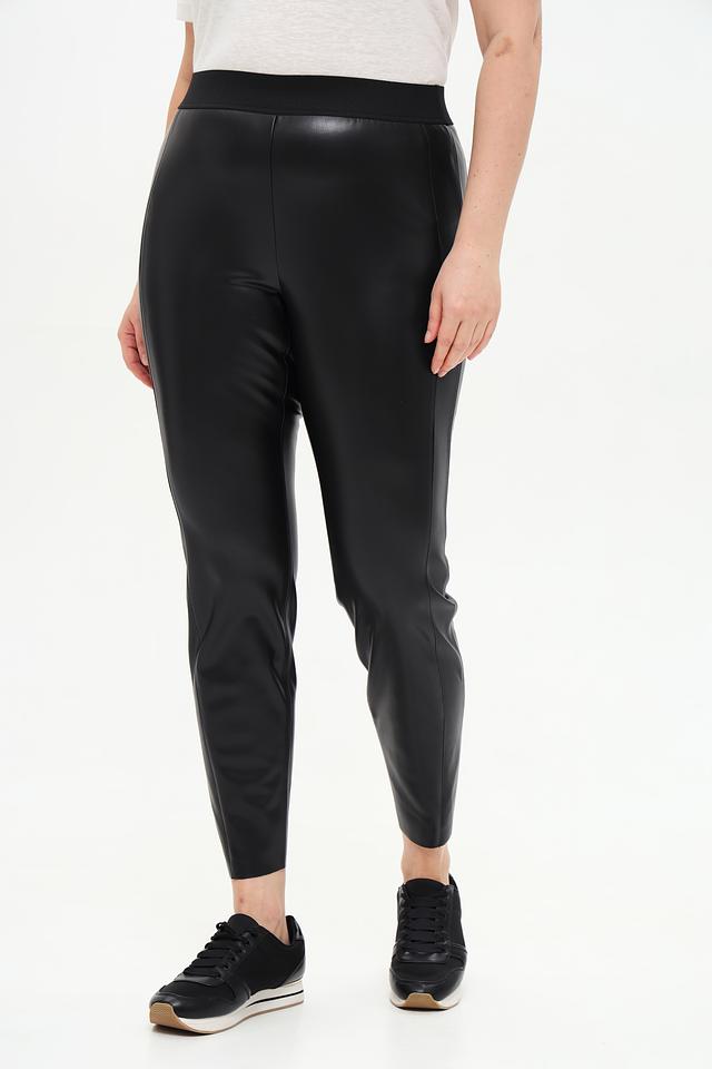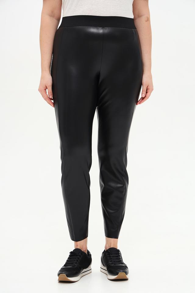 Чёрные брюки от Samoon из экокожи — стильное и комфортное решение для создания модных образов. Прямой крой и эластичный пояс обеспечивают удобную посадку по фигуре. Состав: полиэстер 92%, эластан 8%