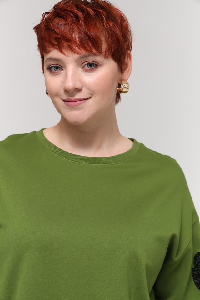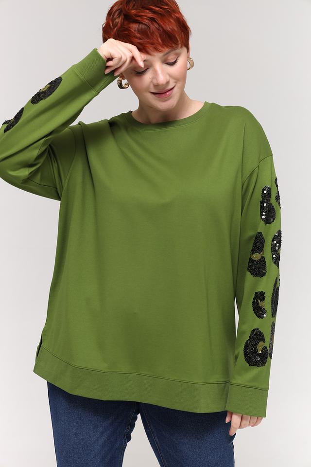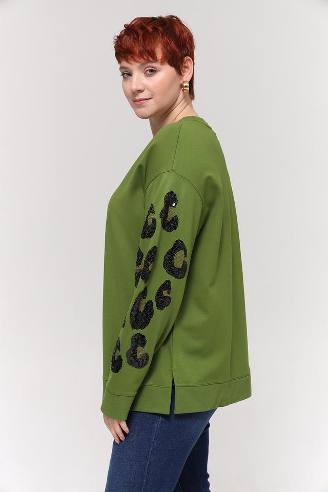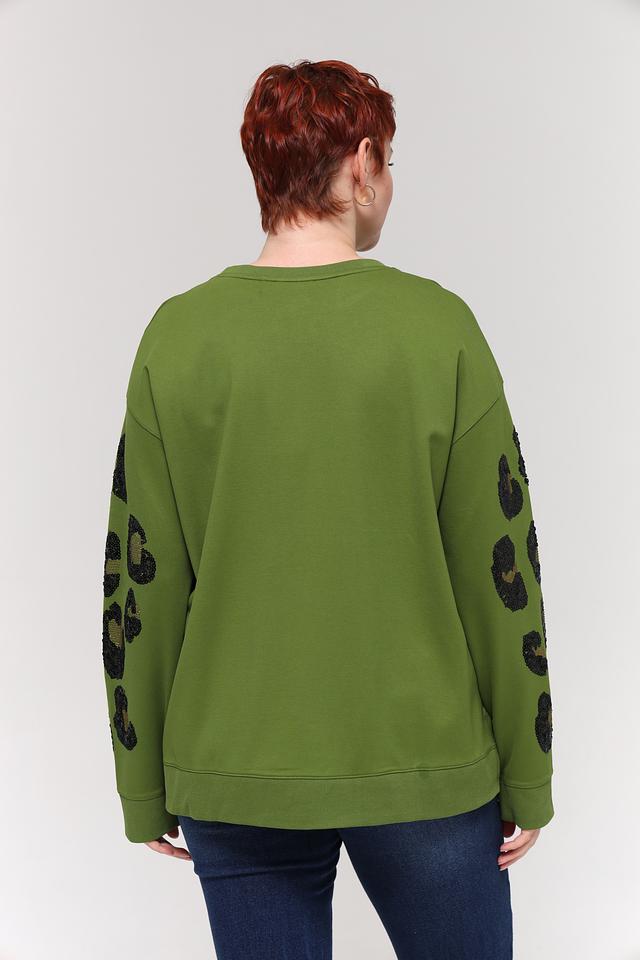 Зелёный пуловер Samoon с рукавами, украшенными леопардовым принтом, станет стильным дополнением к вашему гардеробу. Модель свободного кроя выполнена из мягкой вискозы с добавлением полиамида и эластана. Состав: вискоза 62%, полиамид 33%, эластан 5%