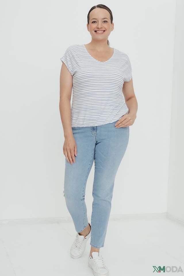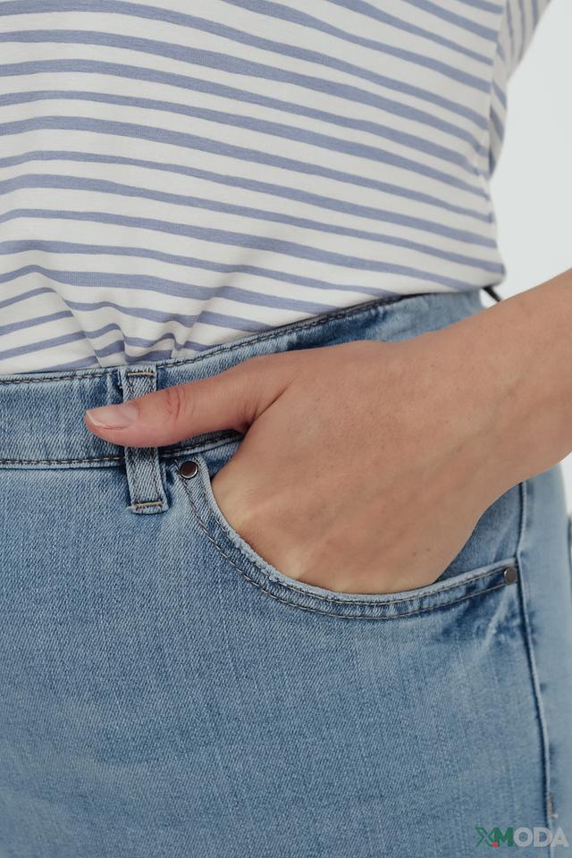 Женские джинсы Samoon голубого цвета с высокой посадкой и прямым кроем. Модель выполнена из хлопка с добавлением переработанного хлопка и эластана, что обеспечивает комфорт и хорошую посадку по фигуре. Состав: хлопок 62%, переработ.хлопок 29%, эластомультиэстер 7%, эластан 2%