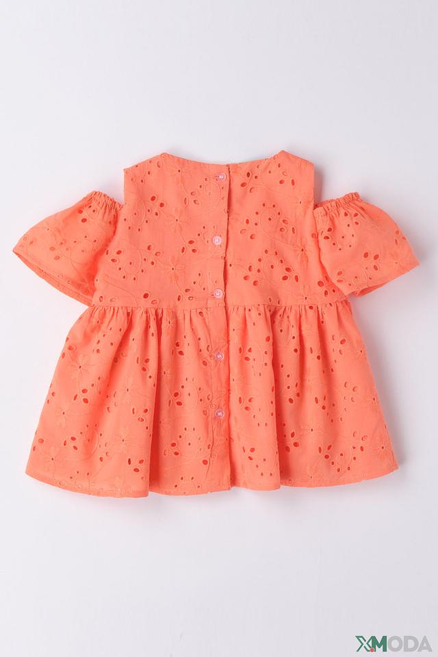 Персиковая блуза от Sarabanda с открытыми плечами – стильный и комфортный выбор для юной модницы. Модель выполнена из 100% хлопка и украшена ажурным рисунком, что делает её особенно нежной и воздушной. Состав: хлопок 100%