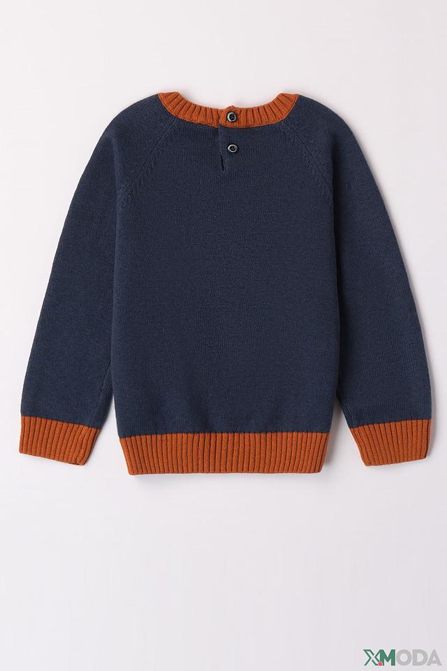 Этот очаровательный джемпер от Sarabanda выполнен в синем цвете и украшен ярким принтом медвежонка. Модель имеет круглый вырез горловины и удобные манжеты в оранжевом цвете, которые не сковывают движения. Джемпер застегивается на плече на две небольшие пуговицы.