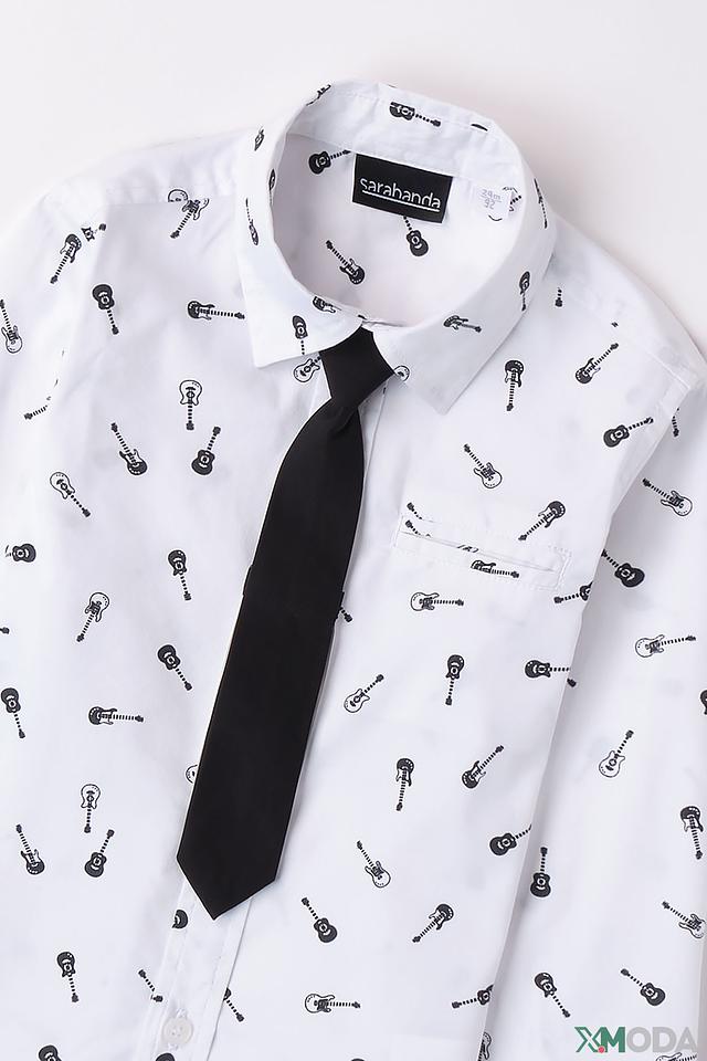 Эта рубашка от Sarabanda станет отличным дополнением к гардеробу вашего мальчика. Выполнена в белом цвете с оригинальным принтом в виде гитар, что придаёт ей особый шарм и индивидуальность.