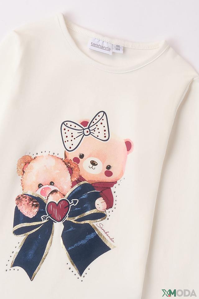 Джемпер Sarabanda для девочки, кремового цвета, с очаровательным принтом мишки. Изготовлен из мягкого хлопка с добавлением эластана для комфорта и свободы движений. Состав: хлопок 95%, эластан 5%