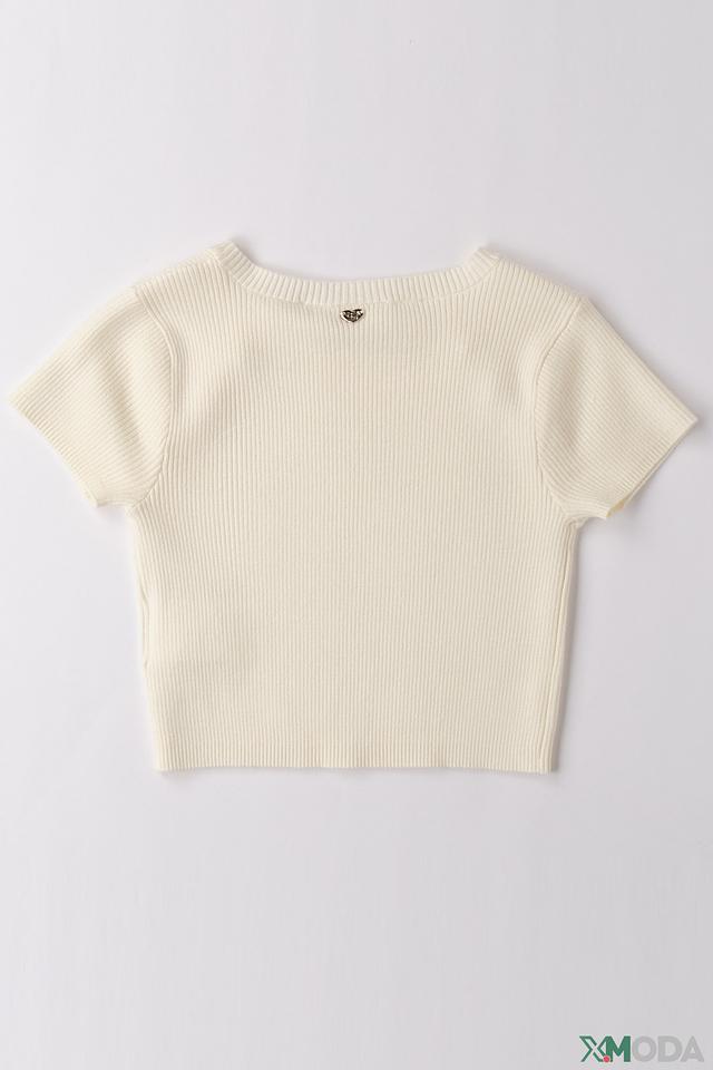 Кремовый цвет футболки выглядит нежно и элегантно, а декоративные пуговицы на плечах добавляют ей изысканности. Круглый вырез горловины обеспечивает комфорт при носке. Короткие рукава делают футболку идеальной для теплой погоды.