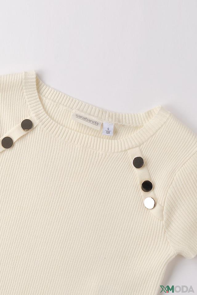 Кремовая футболка Sarabanda для девочки выполнена из приятного рибада. Модель дополнена декоративными пуговицами на плечах, что придает ей особый шарм. Состав: хлопок 65%, полиэфир 35%