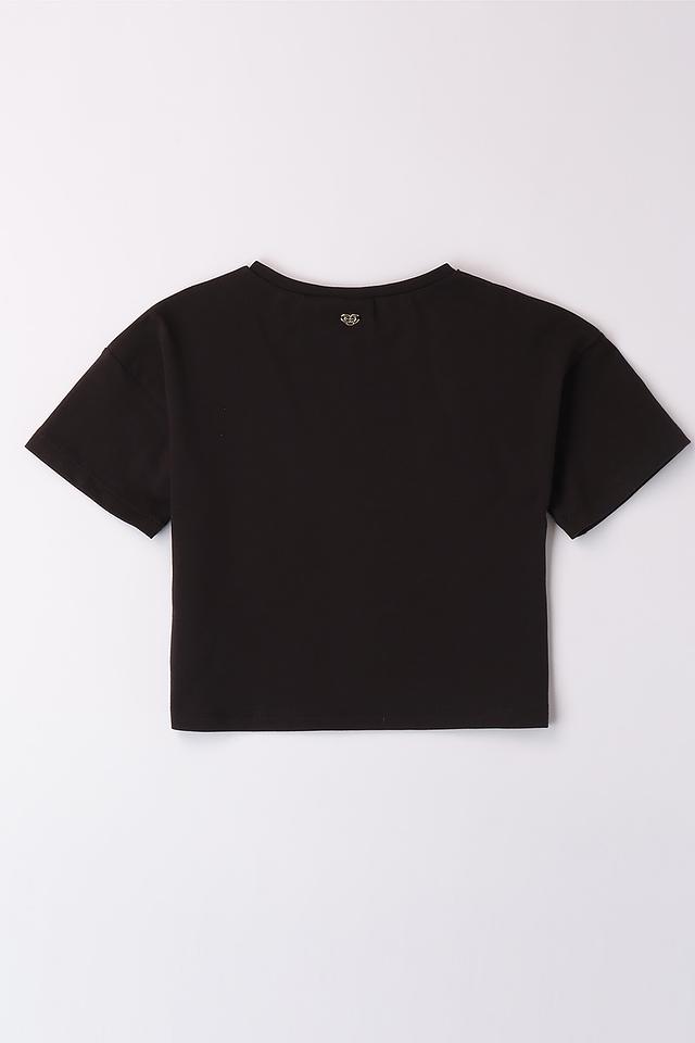 Чёрная футболка Sarabanda для девочек, украшенная стильным логотипом. Изготовлена из мягкого хлопка с добавлением эластана для комфорта и свободы движений. Состав: хлопок 95%, эластан 5%